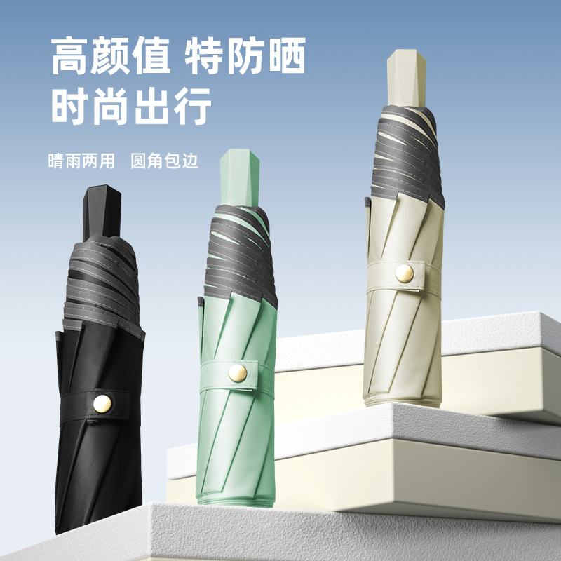 圆角折叠雨伞防晒防紫外线遮阳伞学生女轻便太阳伞防回弹晴雨两用
