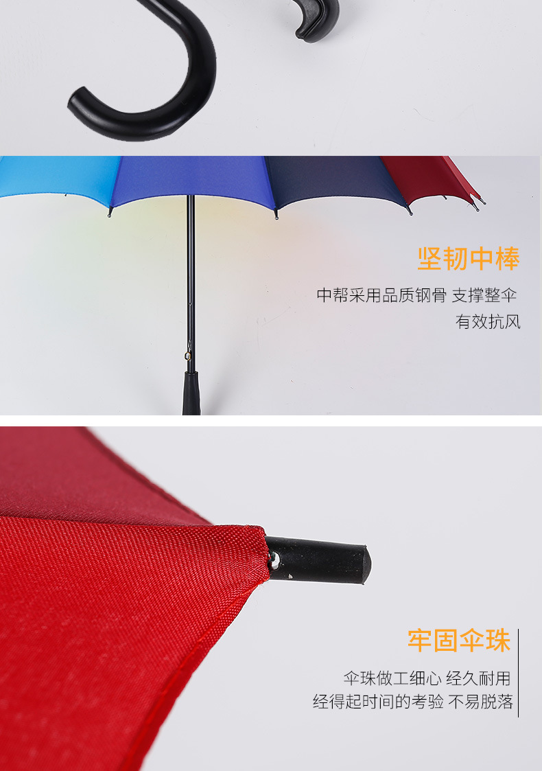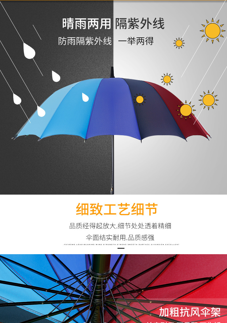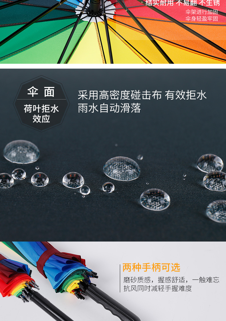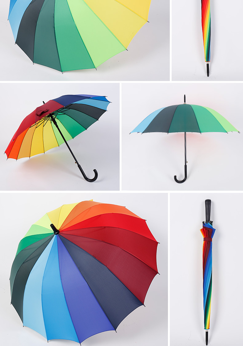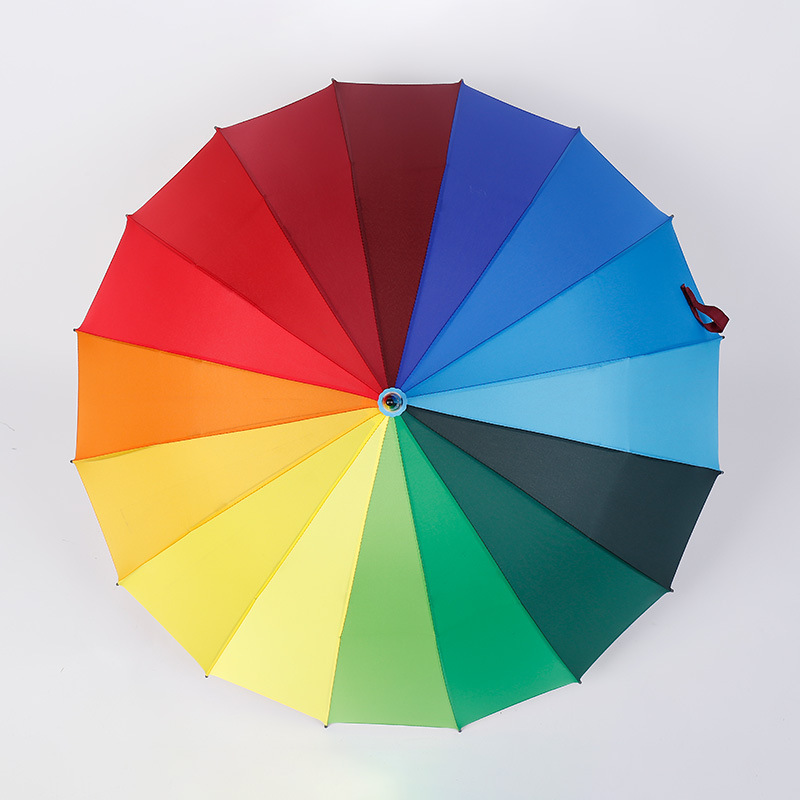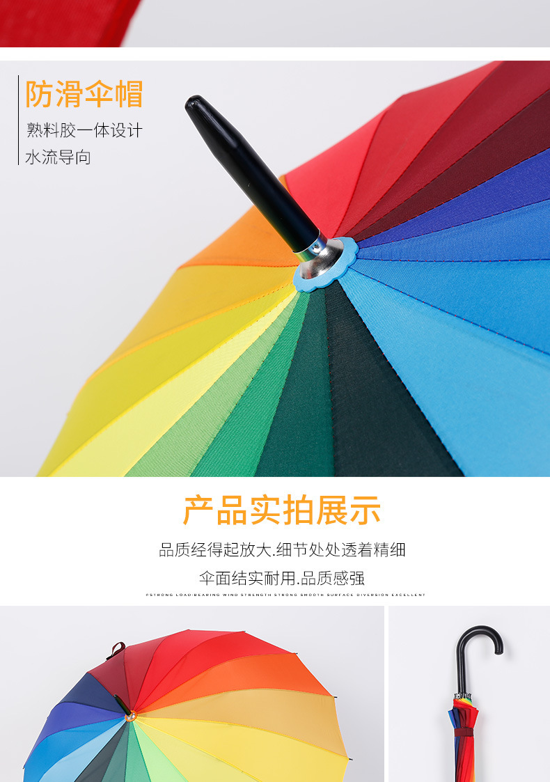 户外长直杆直柄伞16骨创意晴雨伞涤丝彩虹雨伞加印logo直柄广告伞