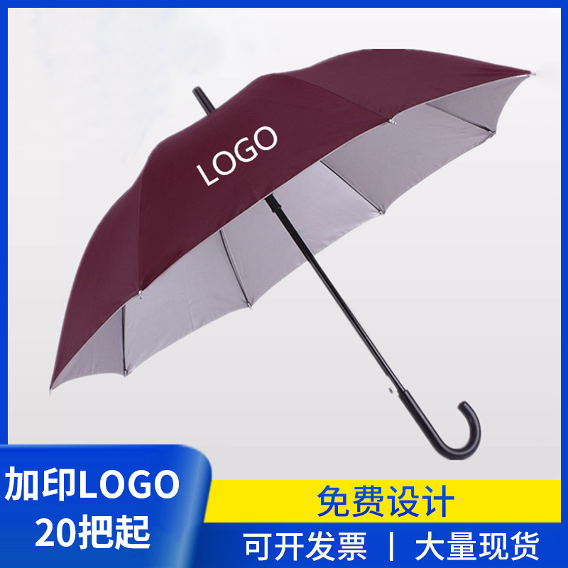 23寸8骨长柄银胶伞弯柄直杆 户外高尔夫自动礼品广告伞可加印LOGO