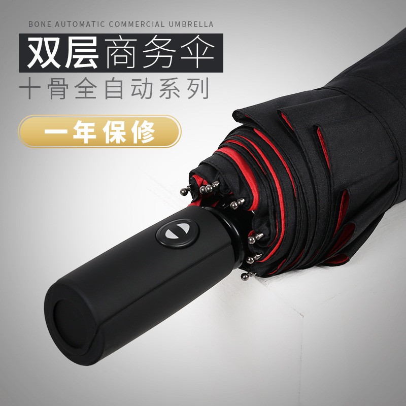 全自动10骨折叠加固防风双层雨伞男女双人晴雨两用双层广告伞logo