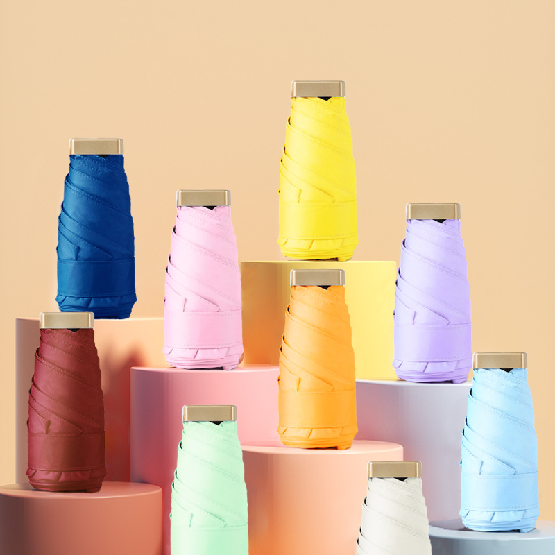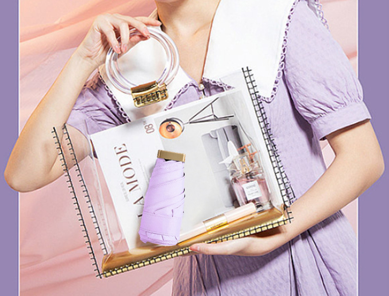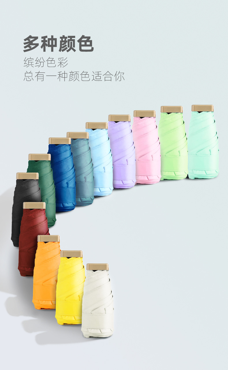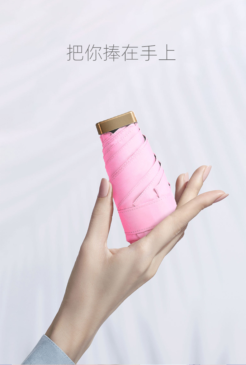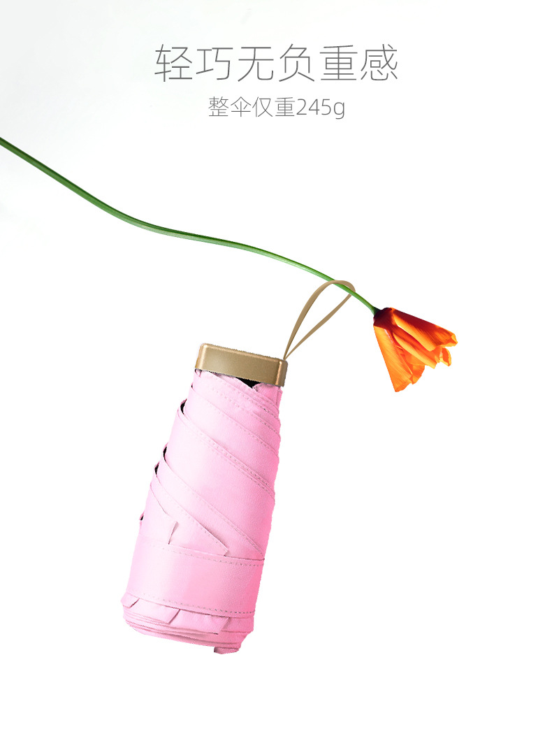 超轻便携口袋伞晴雨两用防紫外线遮阳折叠可印Logo女士迷你扁五折