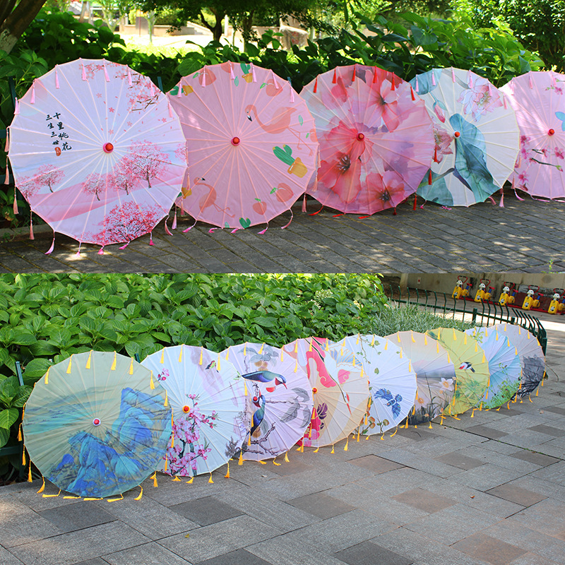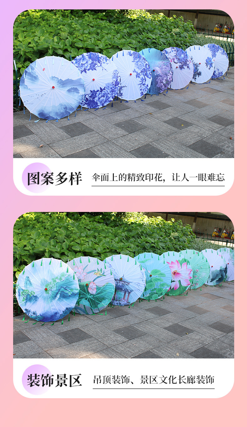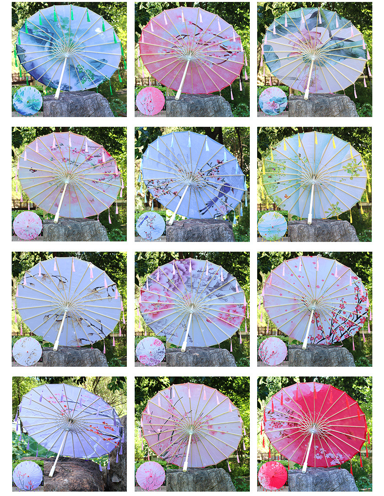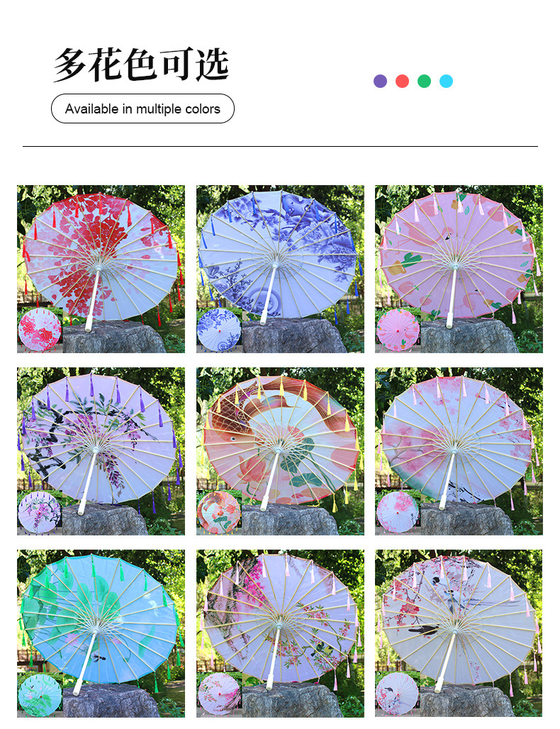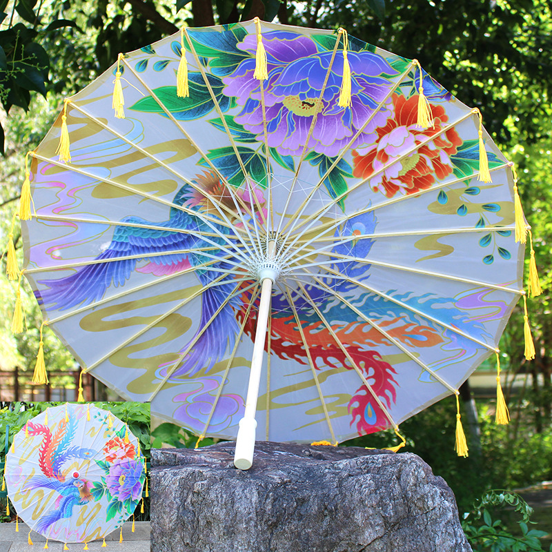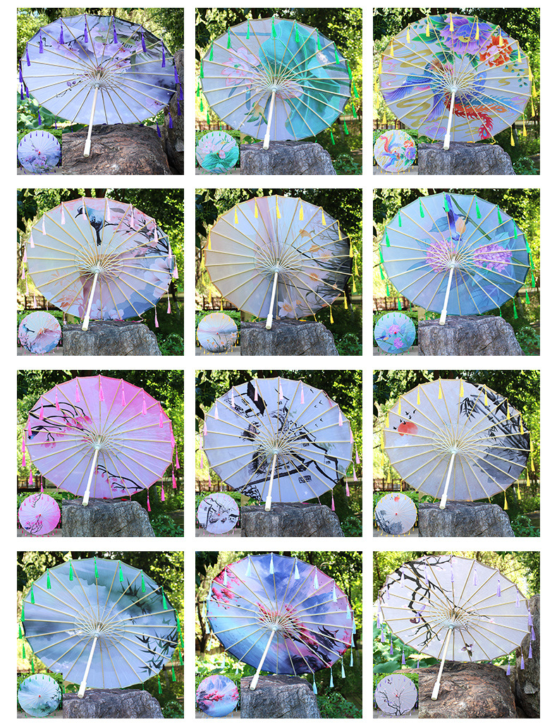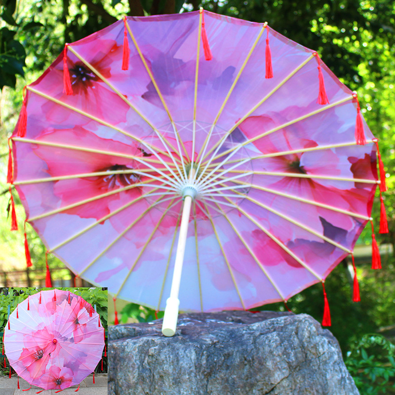 印花绸布流苏伞中国风汉服古装舞蹈吊顶表演装饰绸布工艺伞批发