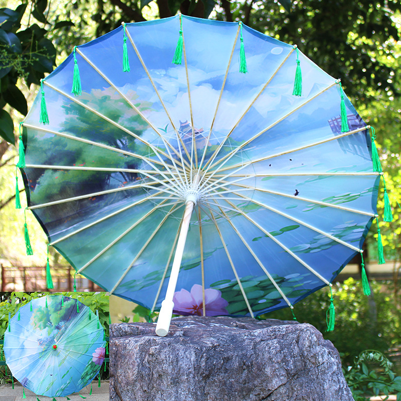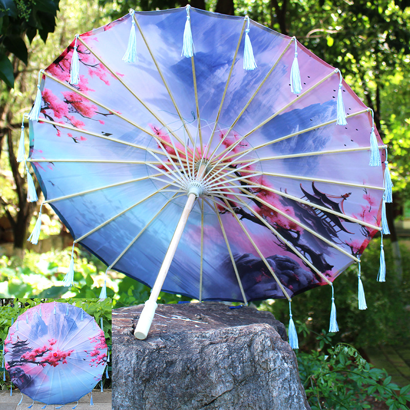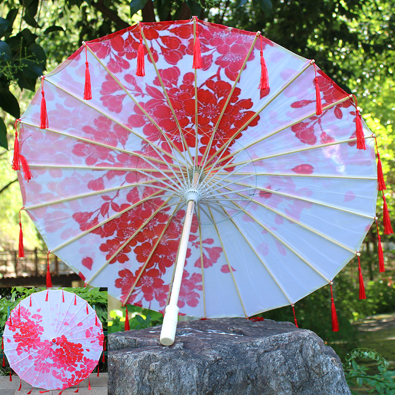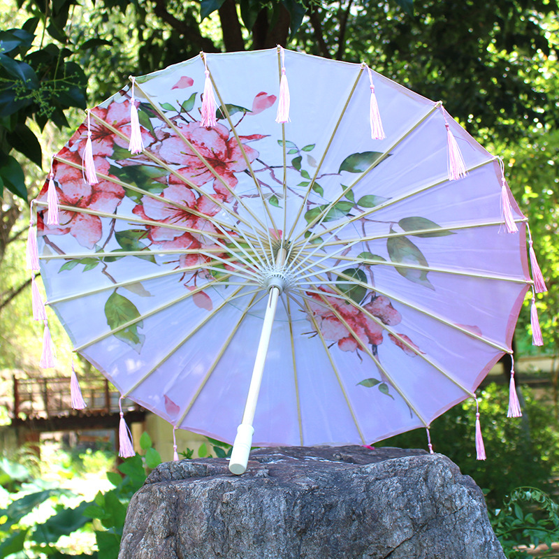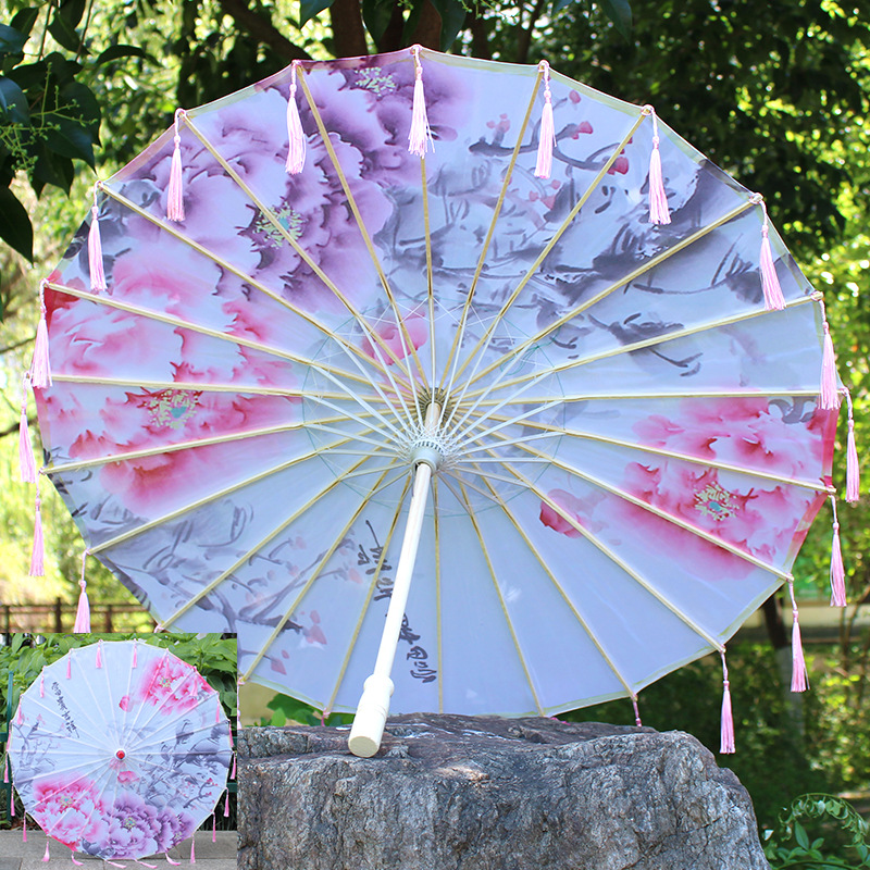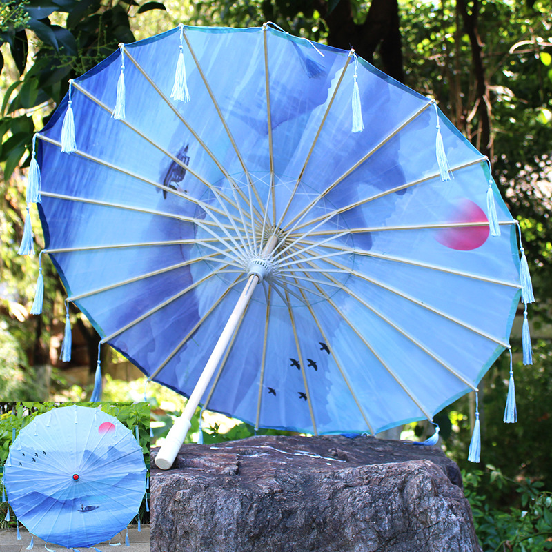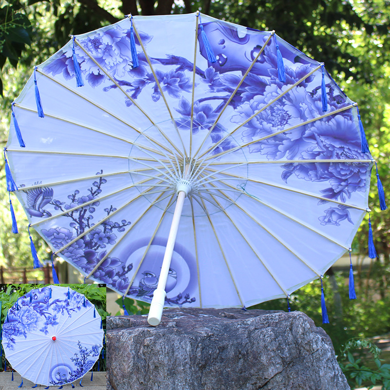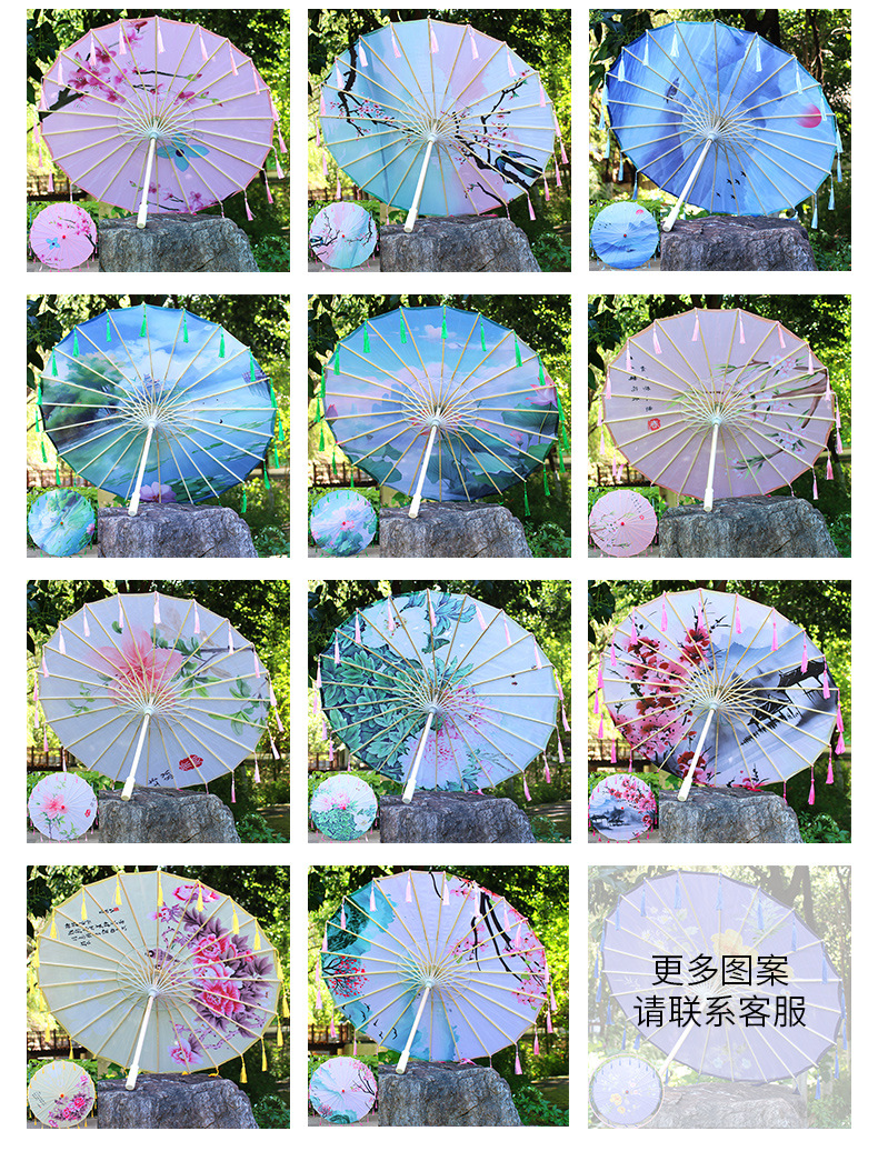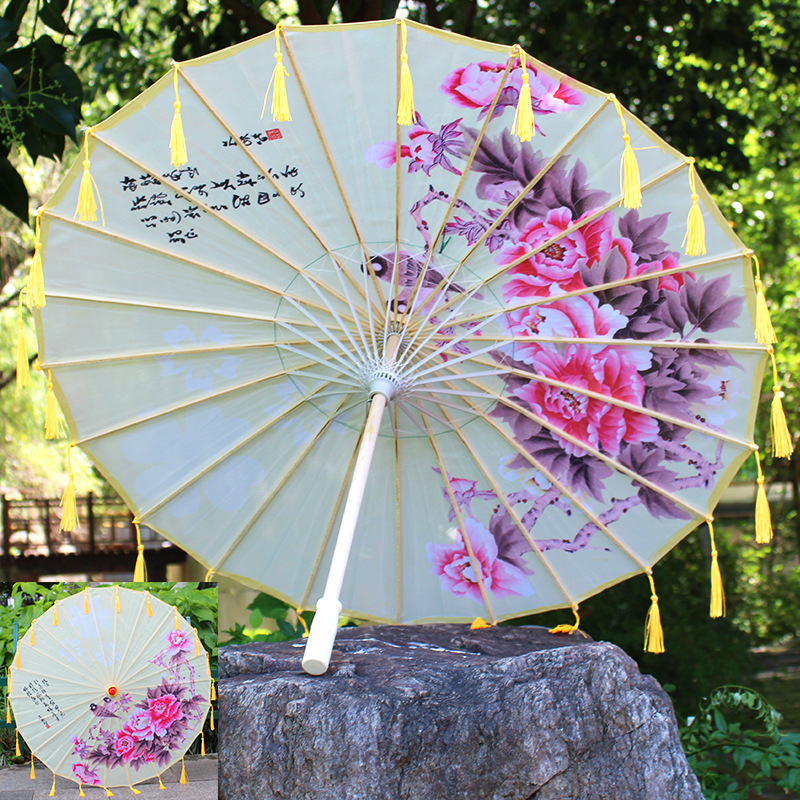 印花绸布流苏伞中国风汉服古装舞蹈吊顶表演装饰绸布工艺伞批发