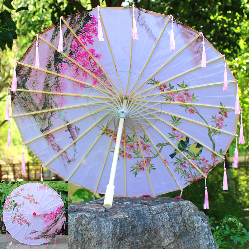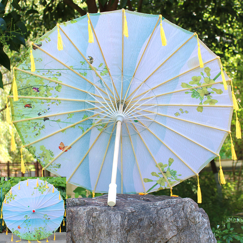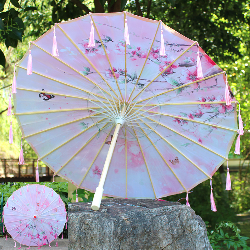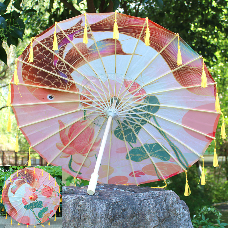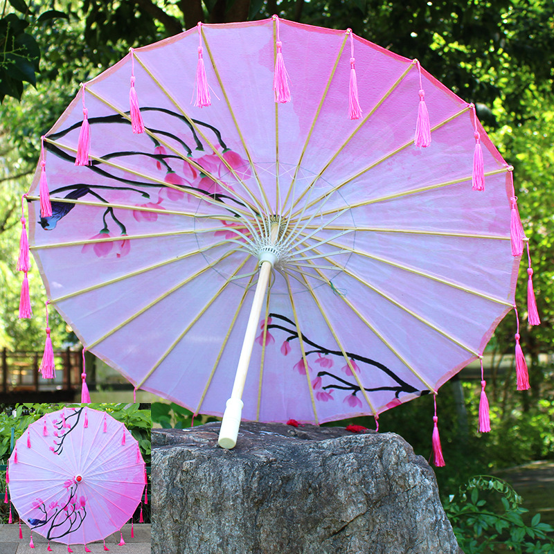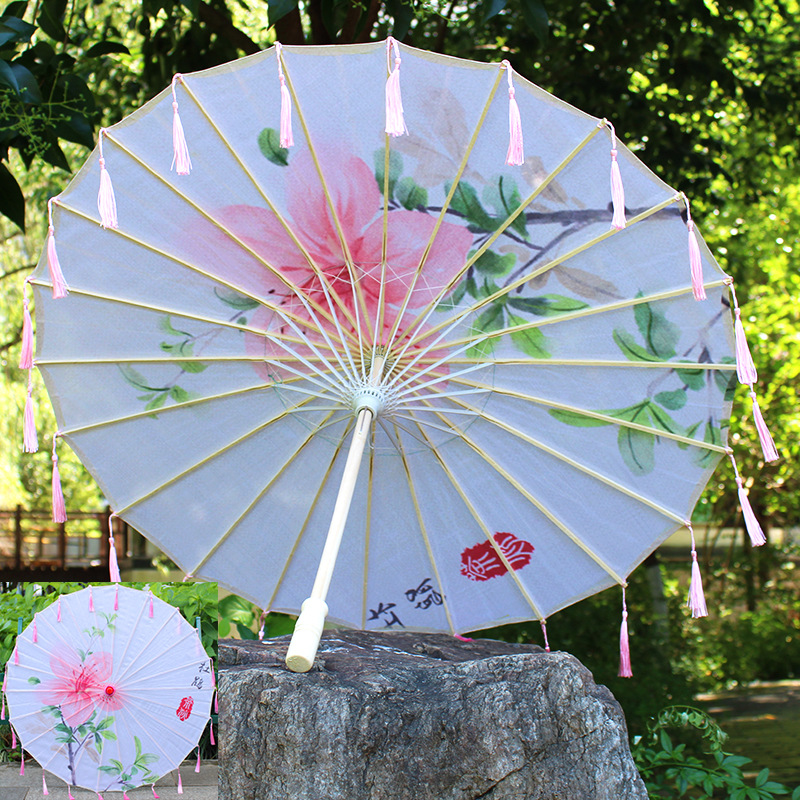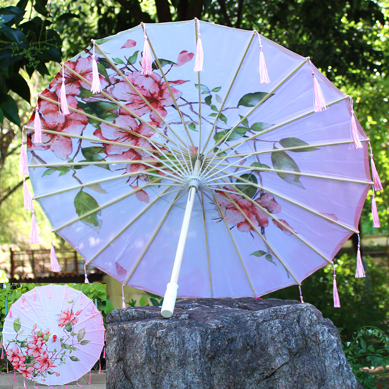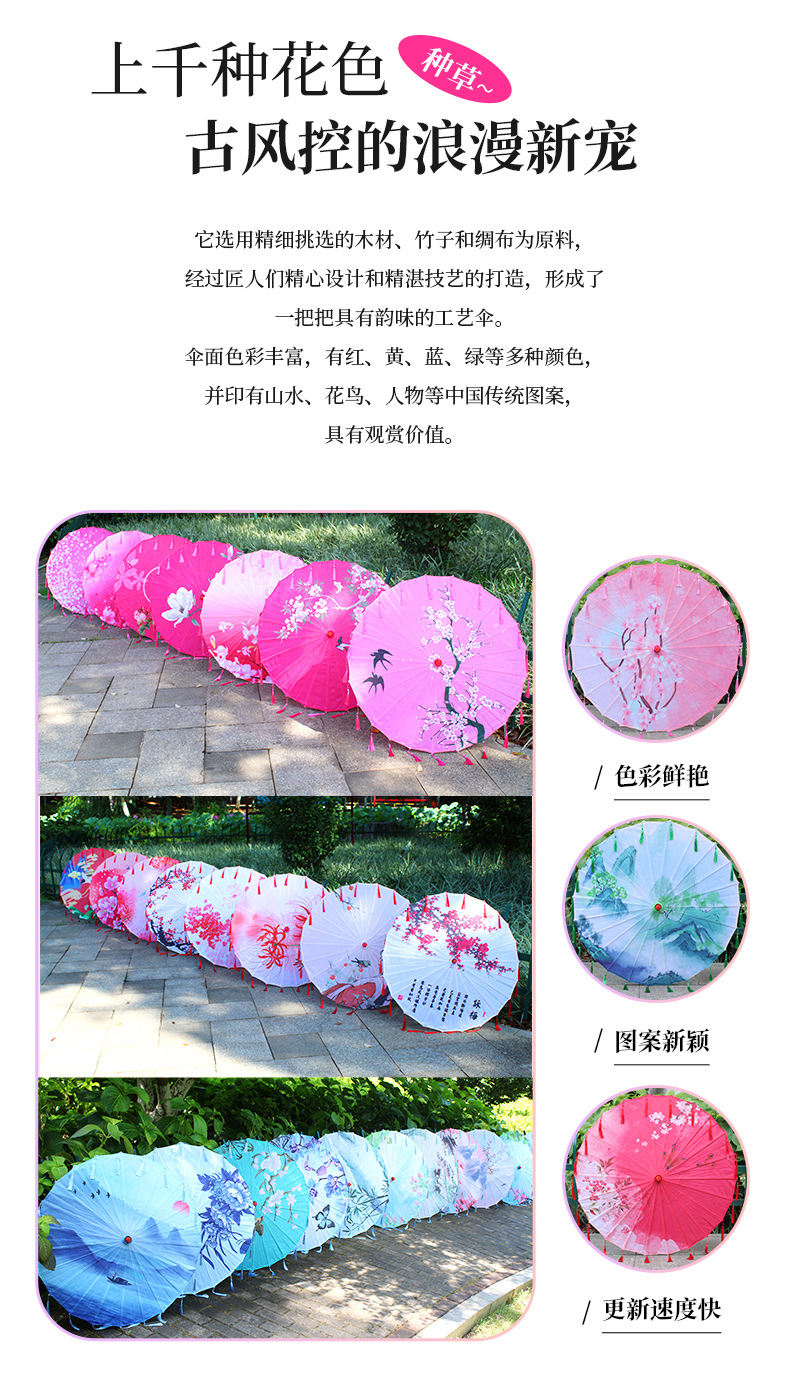 印花绸布流苏伞中国风汉服古装舞蹈吊顶表演装饰绸布工艺伞批发