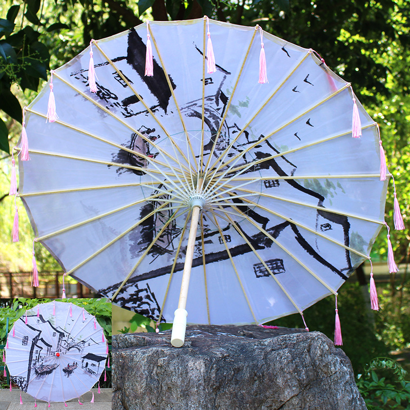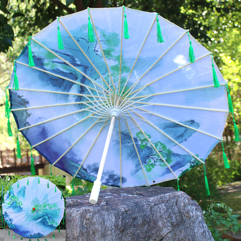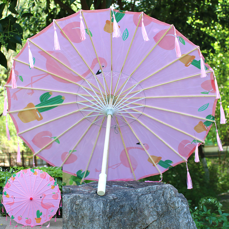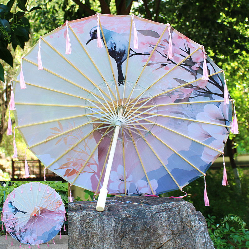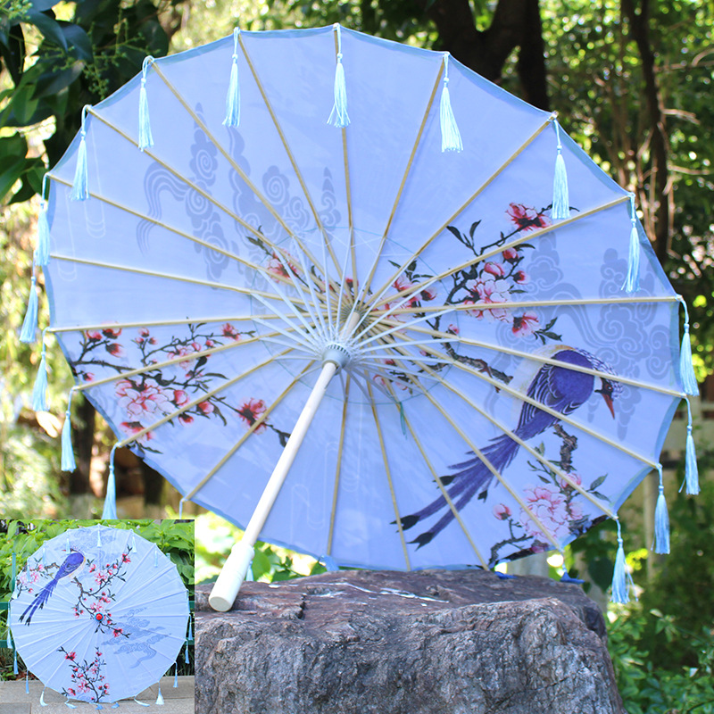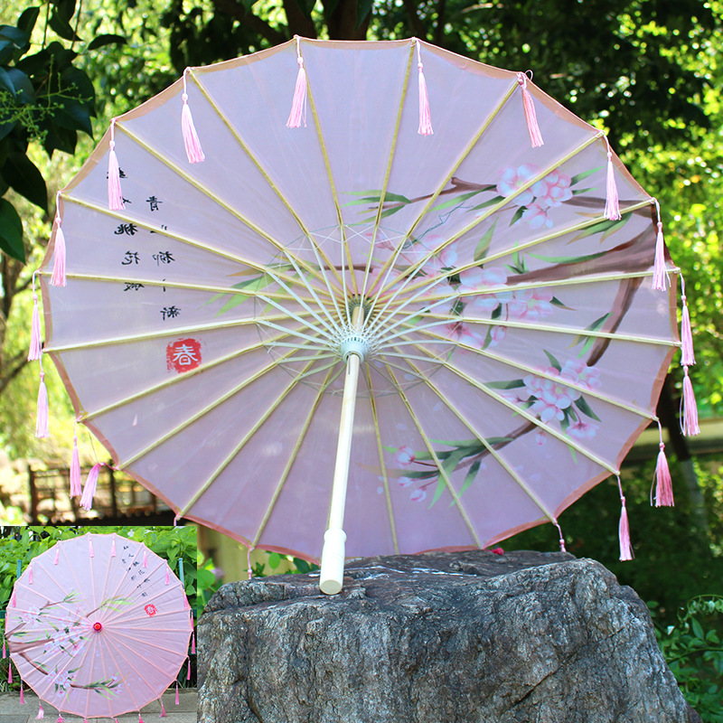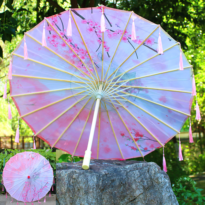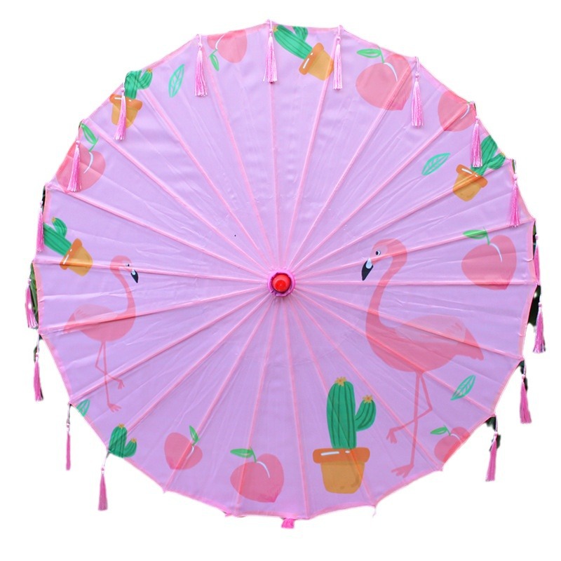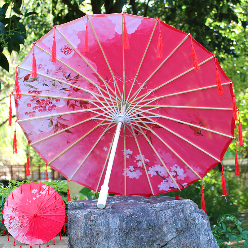 印花绸布流苏伞中国风汉服古装舞蹈吊顶表演装饰绸布工艺伞批发