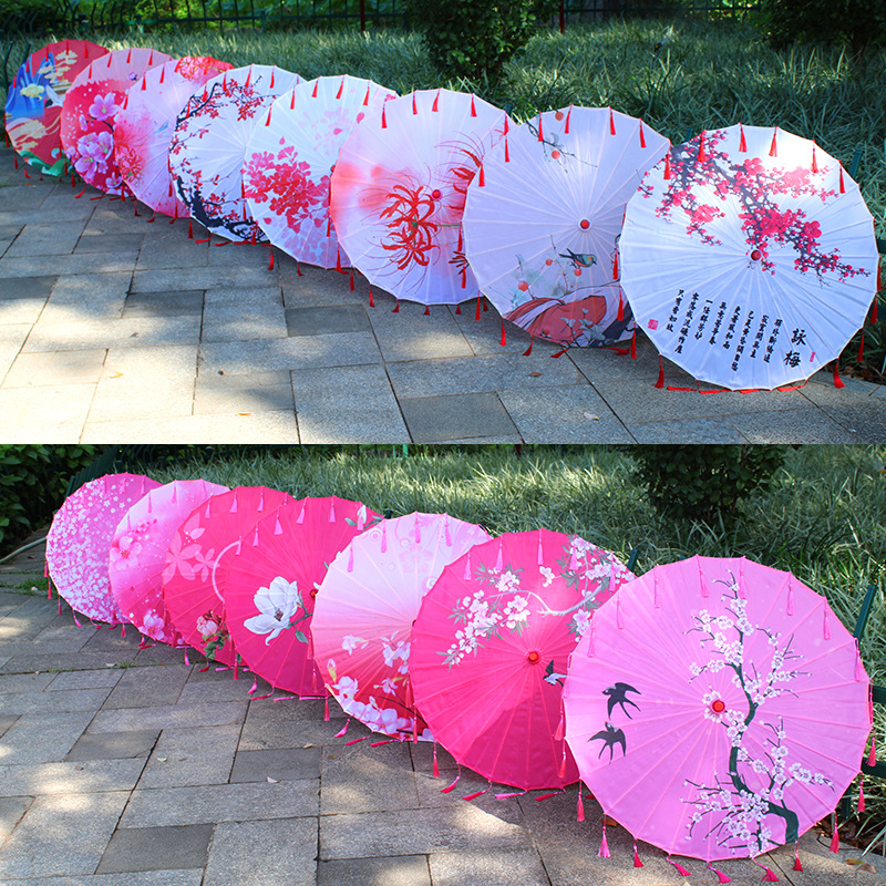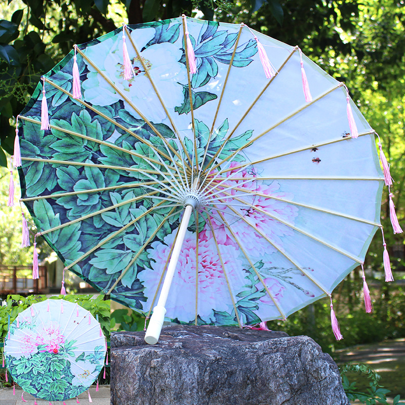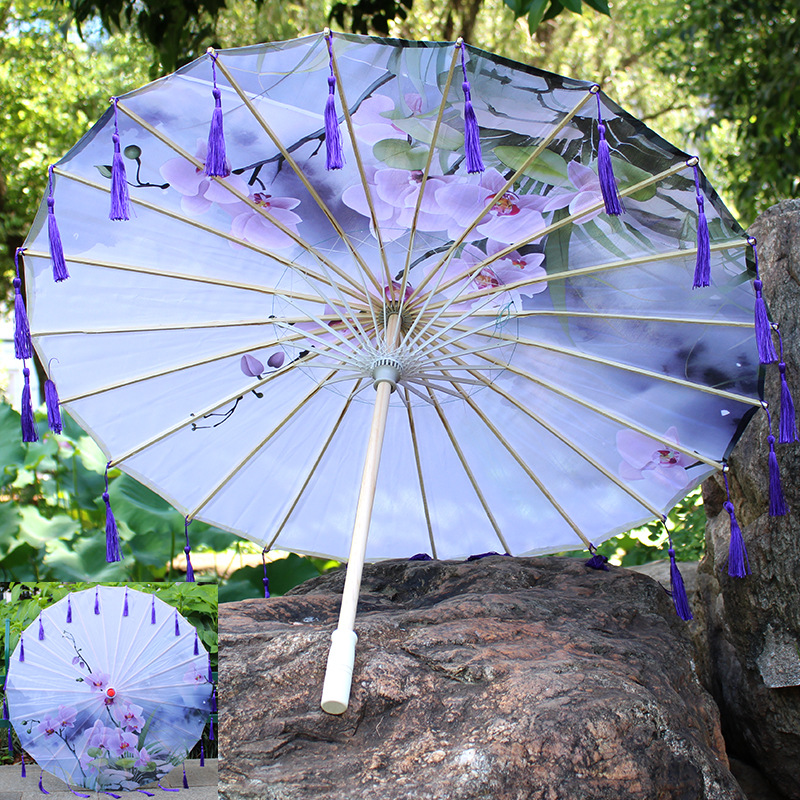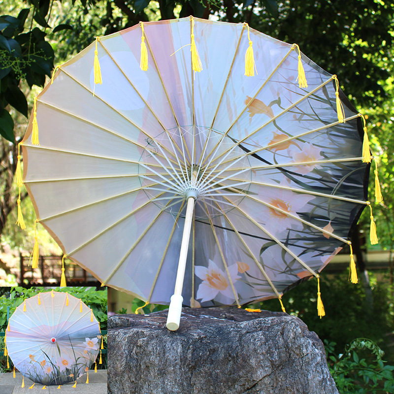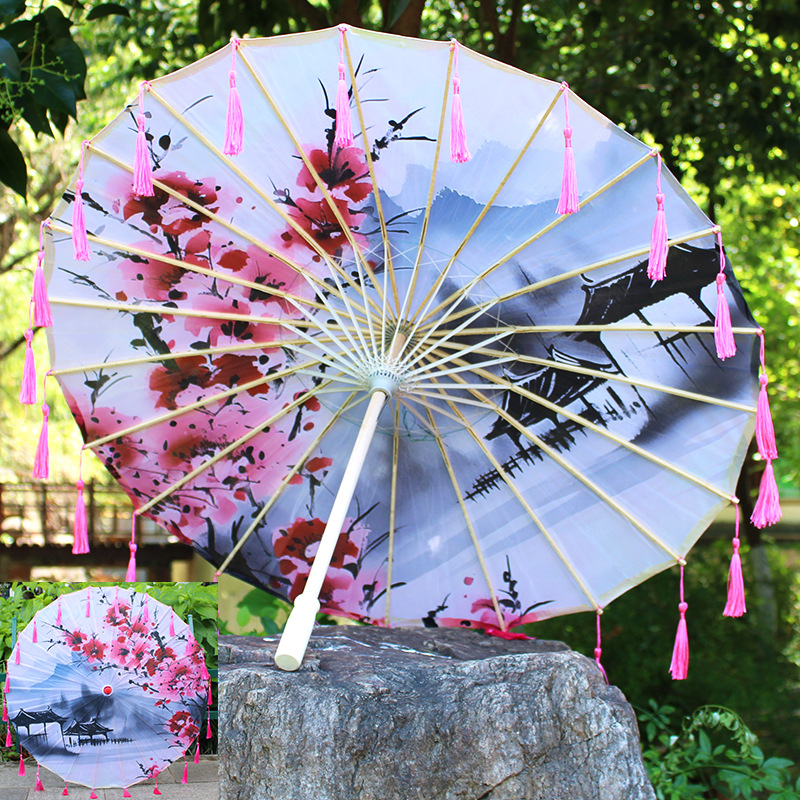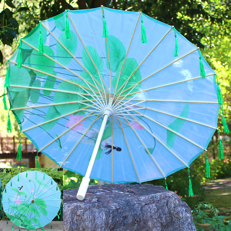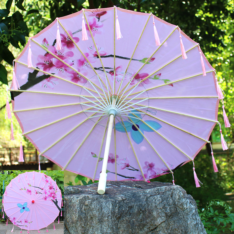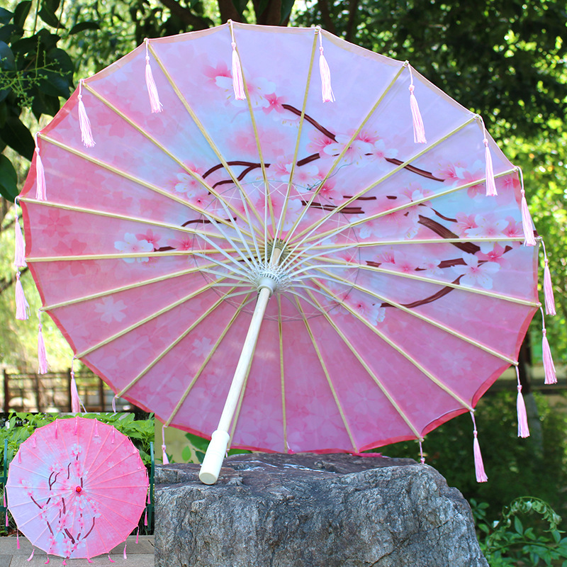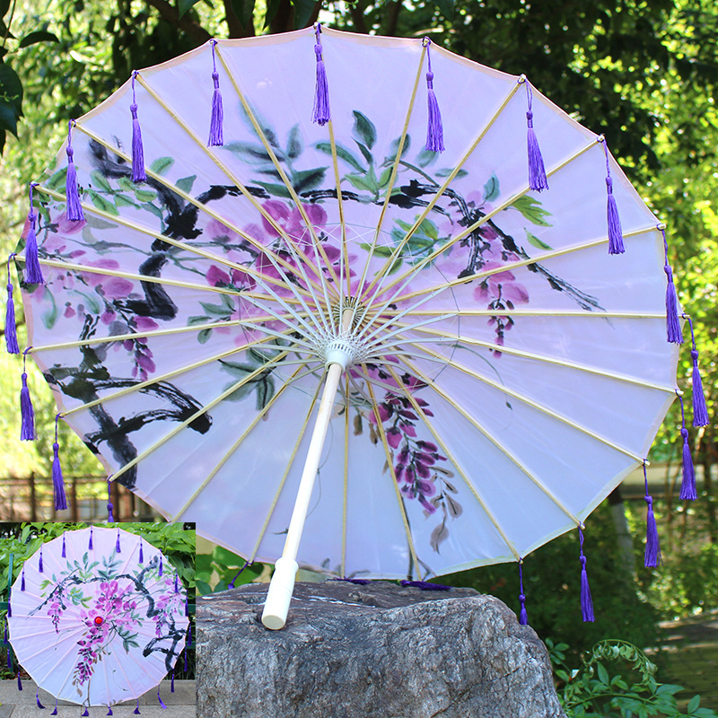 印花绸布流苏伞中国风汉服古装舞蹈吊顶表演装饰绸布工艺伞批发