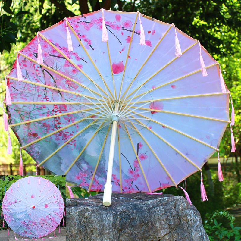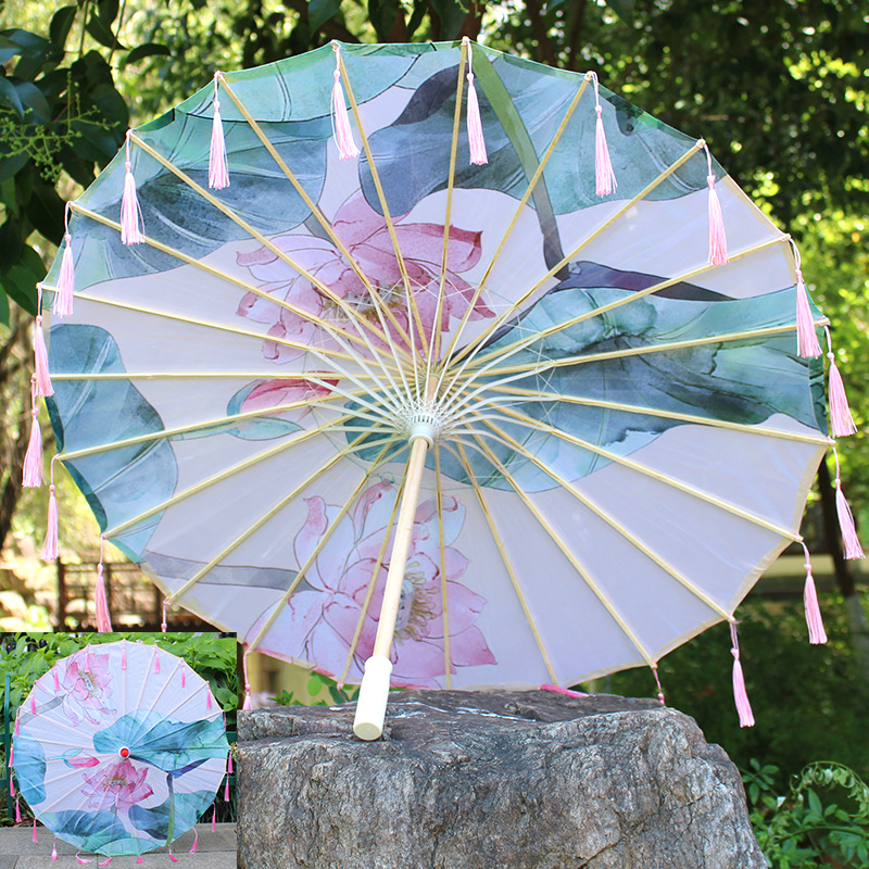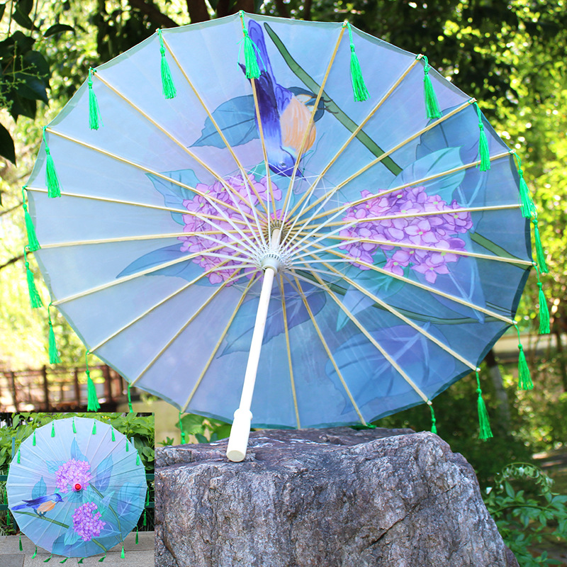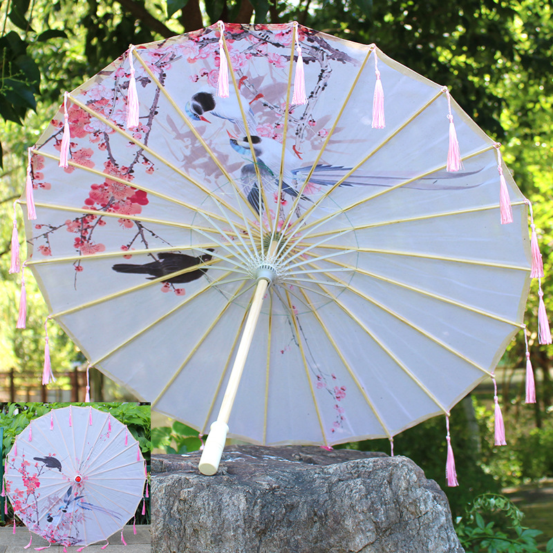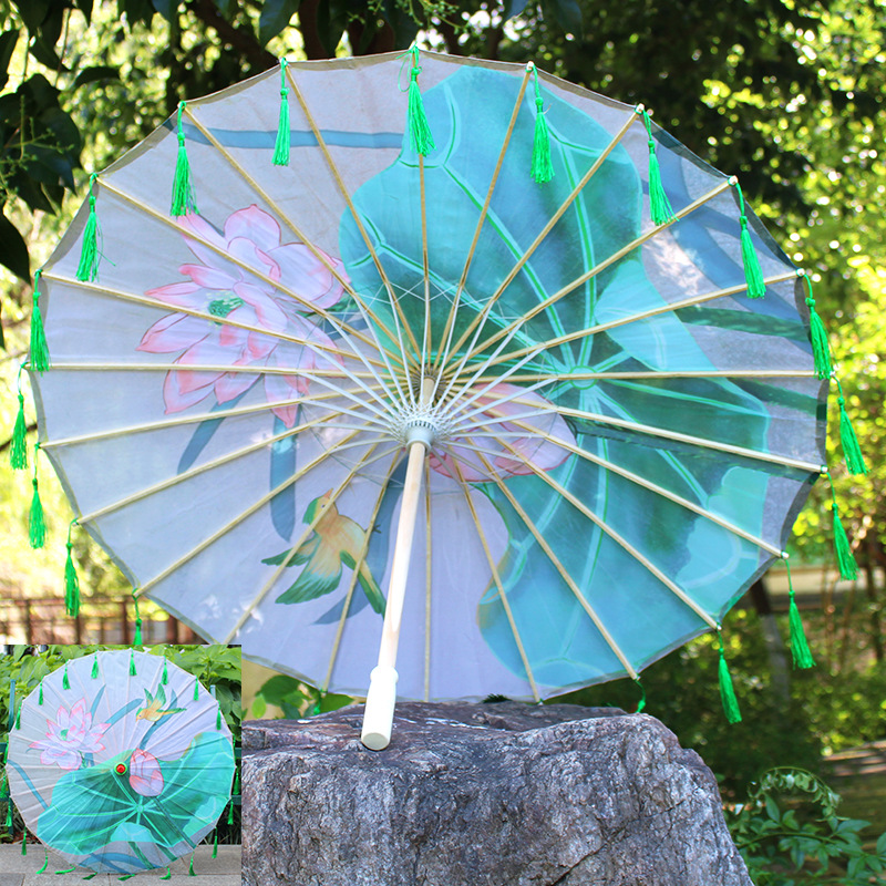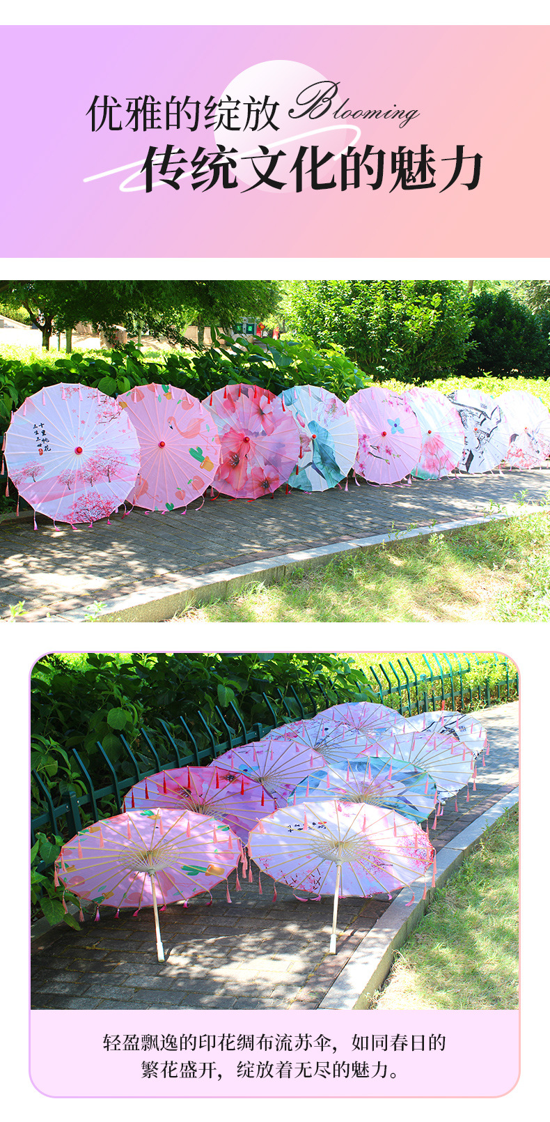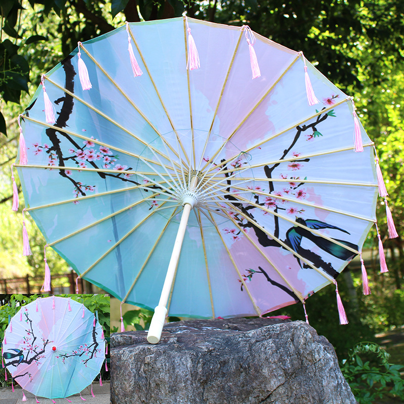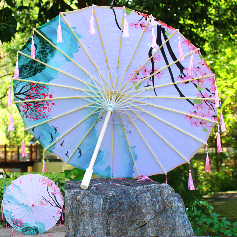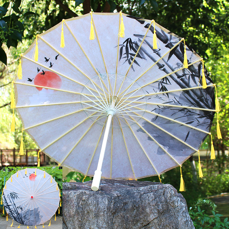 印花绸布流苏伞中国风汉服古装舞蹈吊顶表演装饰绸布工艺伞批发