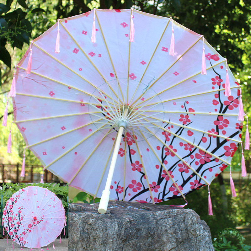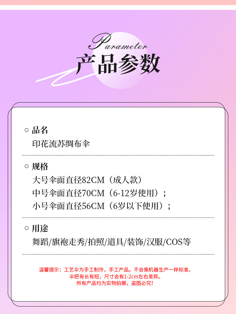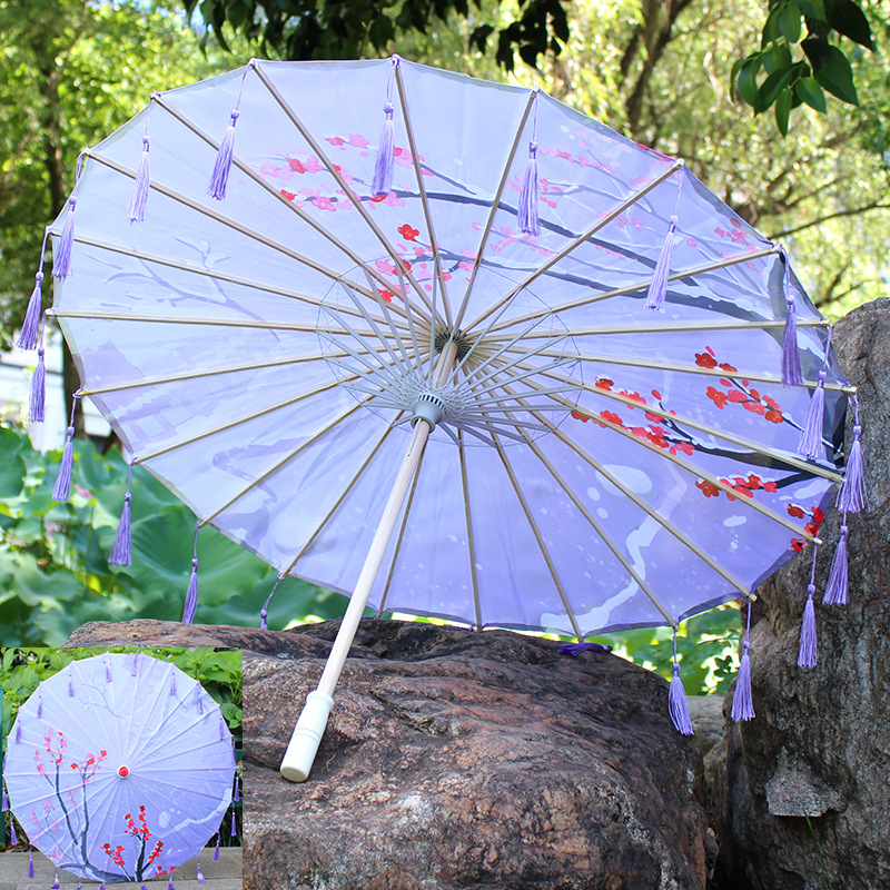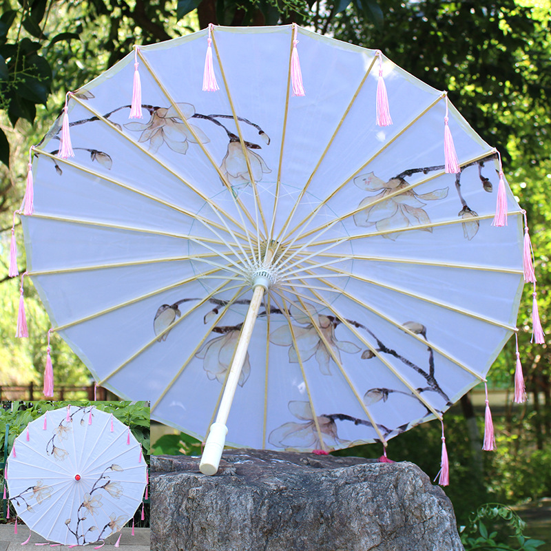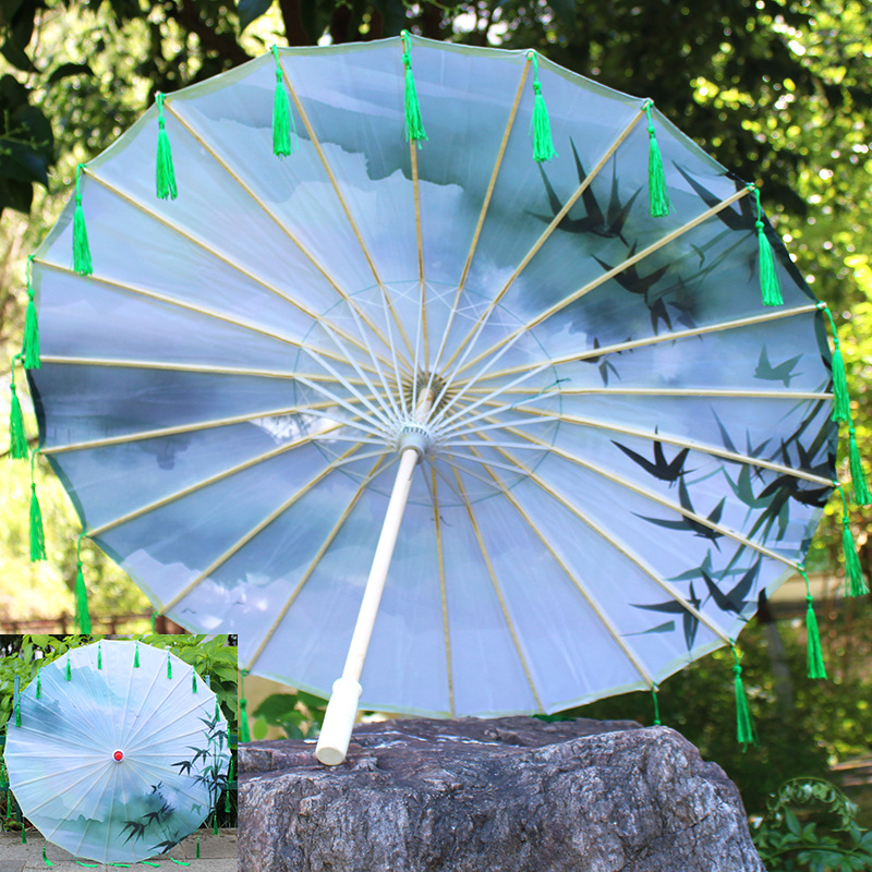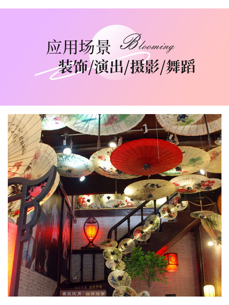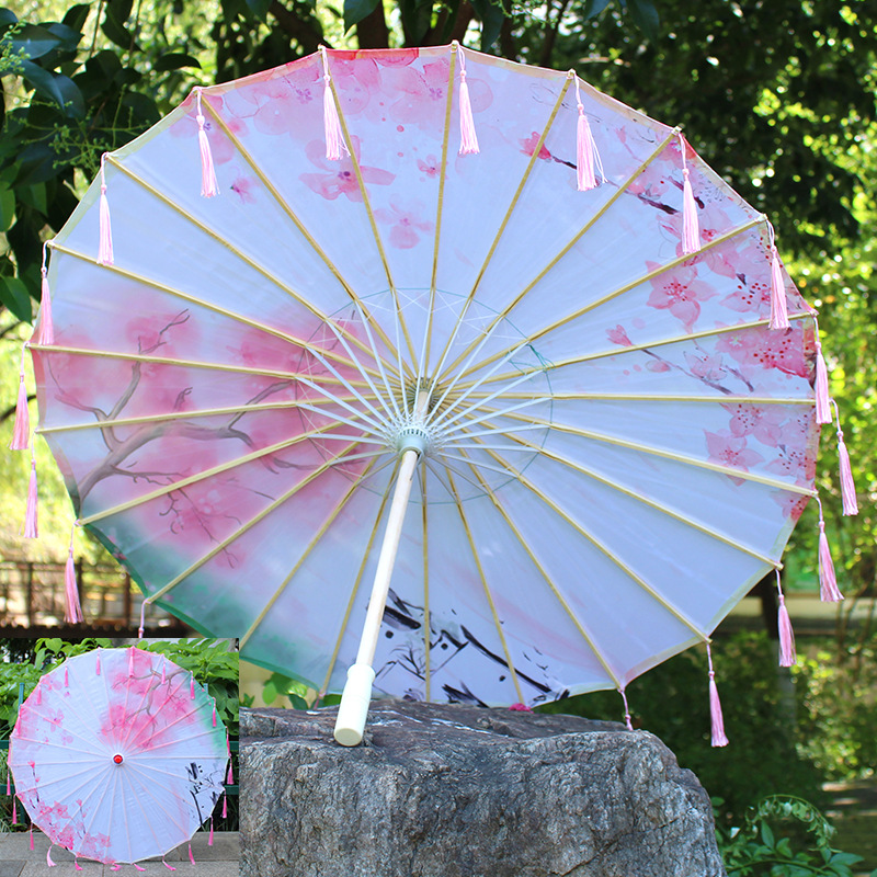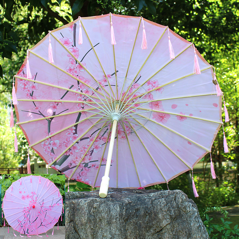 印花绸布流苏伞中国风汉服古装舞蹈吊顶表演装饰绸布工艺伞批发