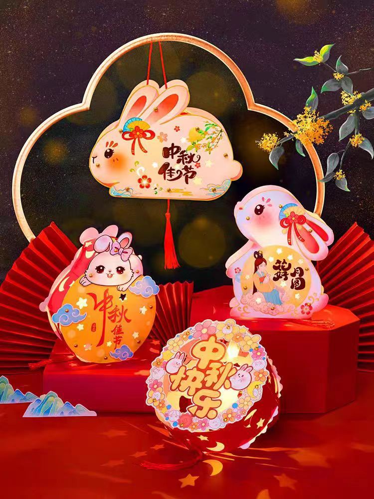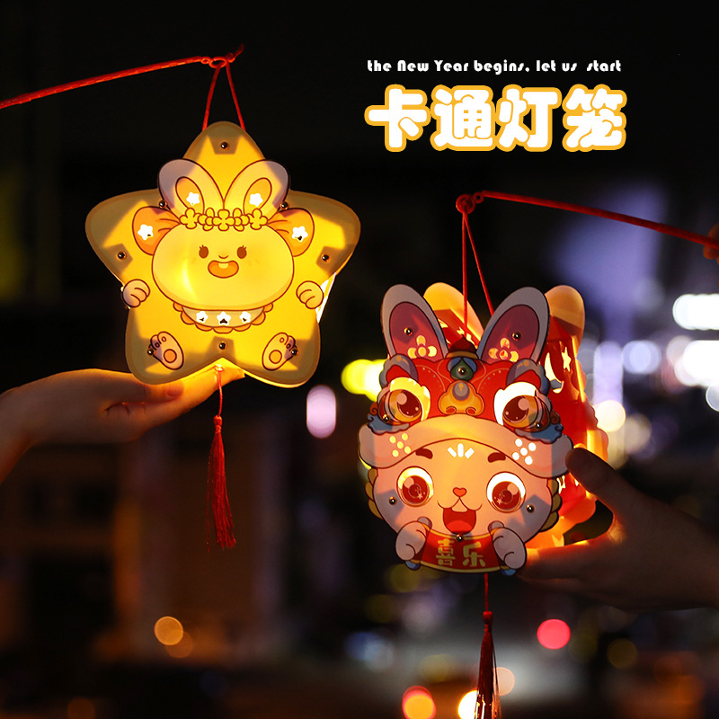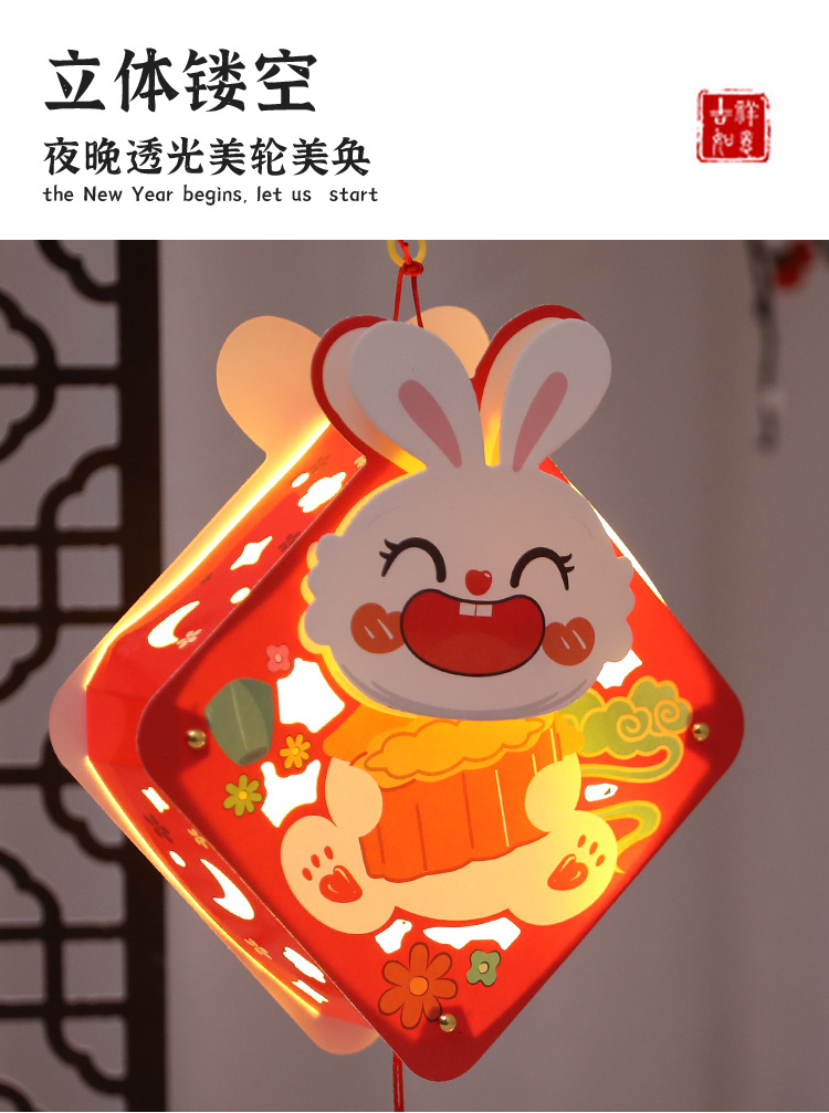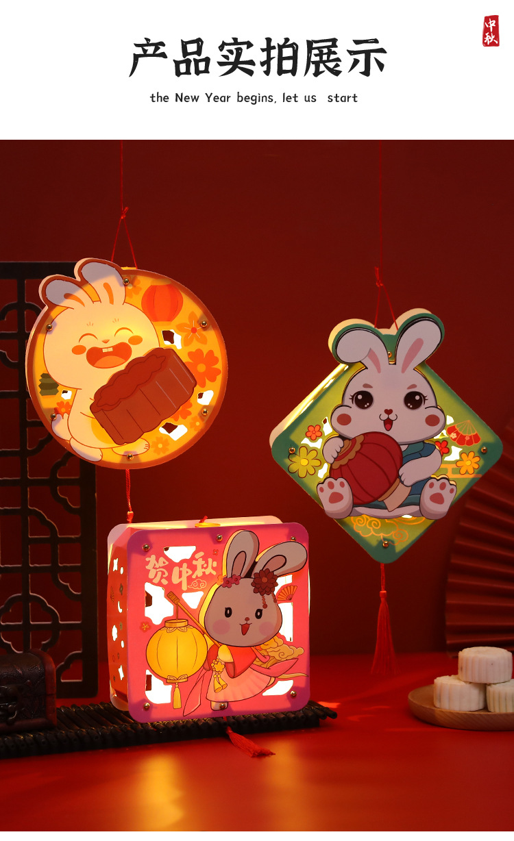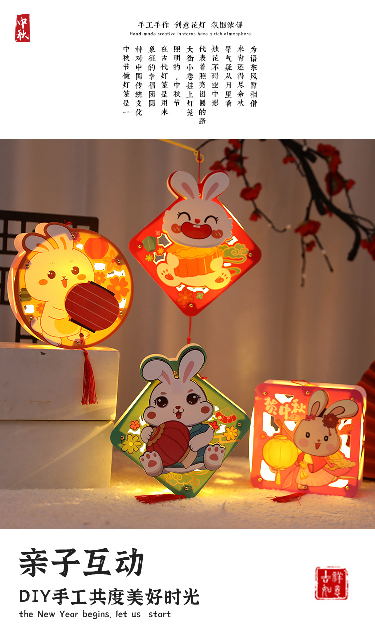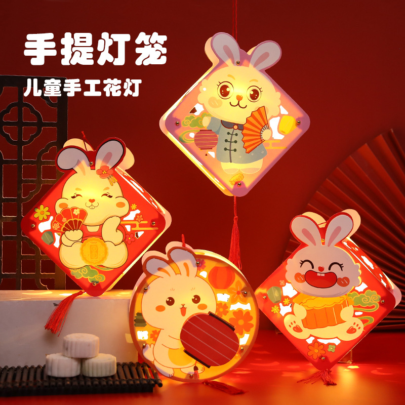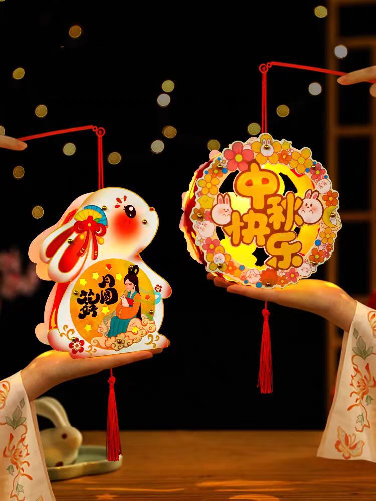 中秋节小灯笼手提儿童发光灯笼龙年走马灯手工材料包越南花灯