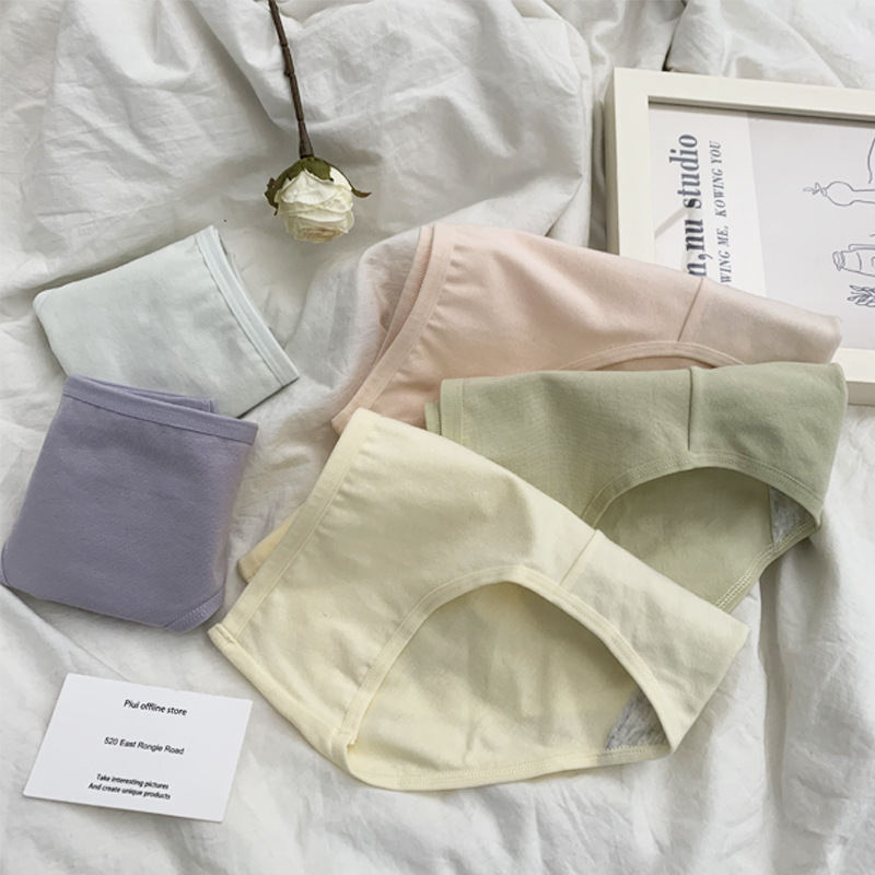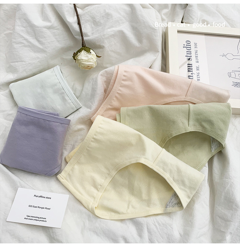 原创纯色简约可爱卡通女士内裤舒适透气内裤纯棉裆包臀女士三角裤