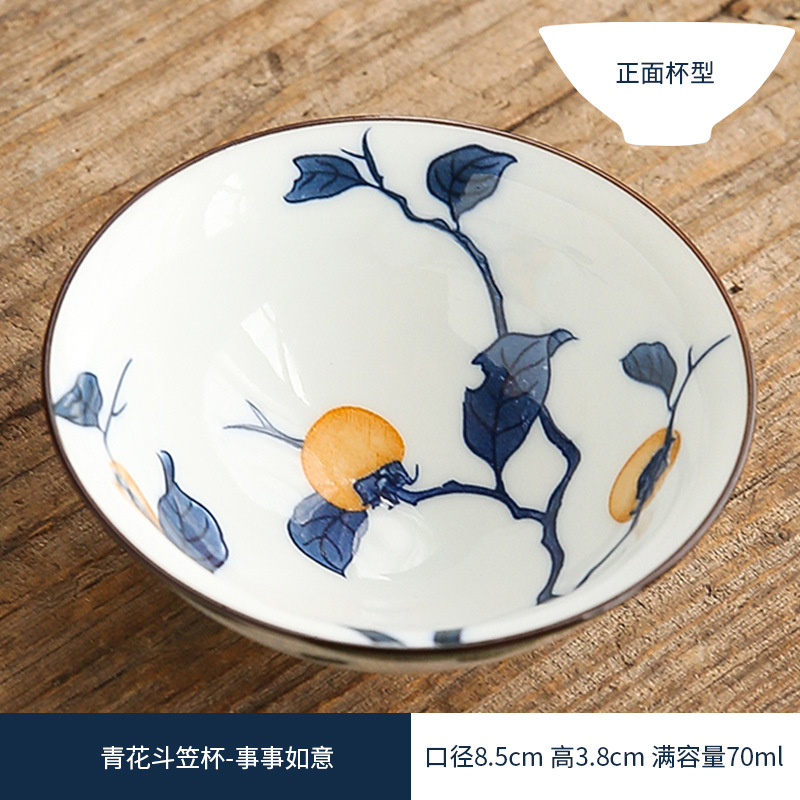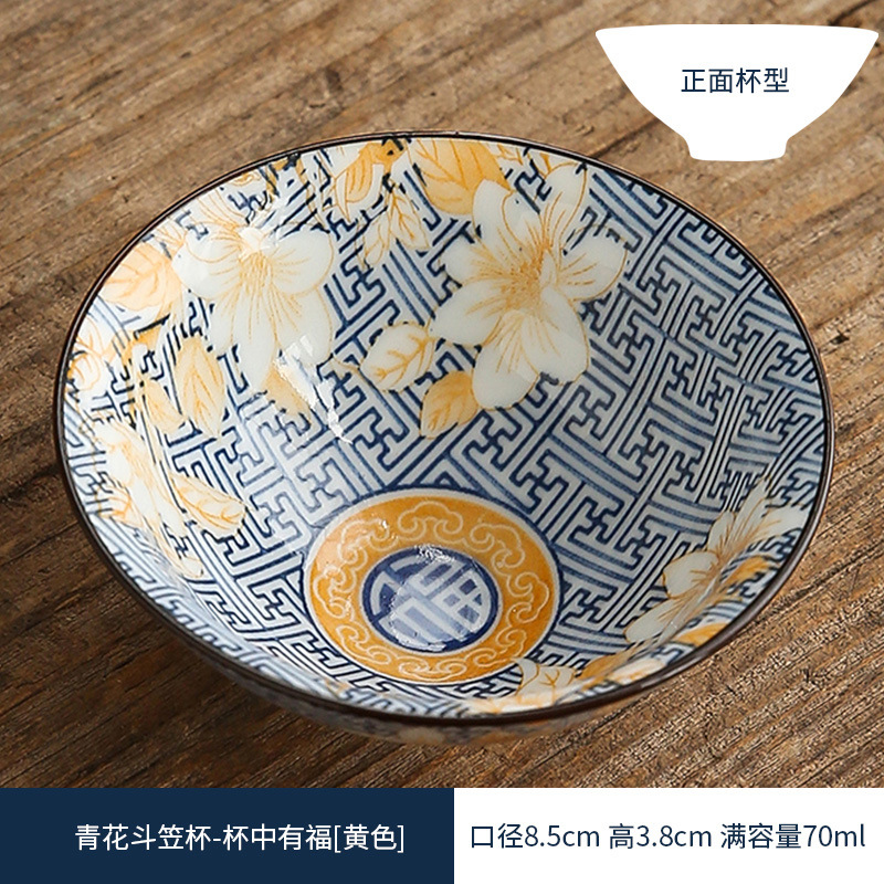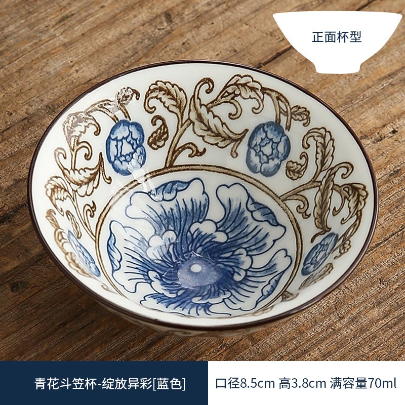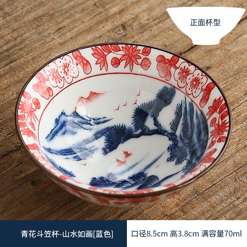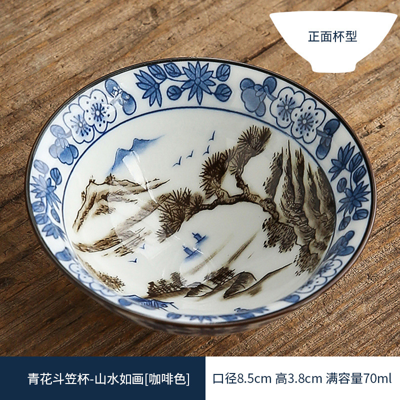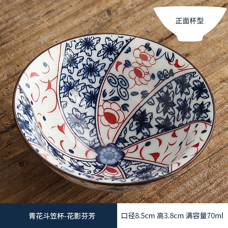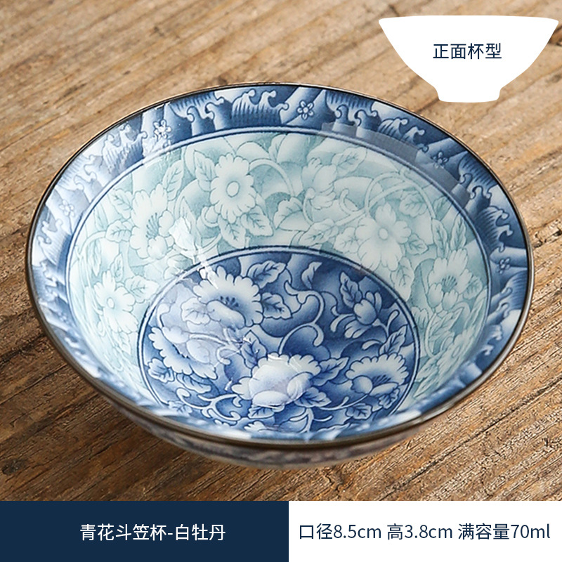 双色青花瓷斗笠杯茶杯陶瓷功夫茶具主人杯日式茶盏单杯品茗杯茶碗