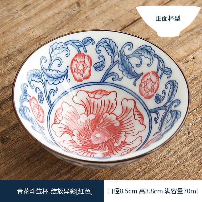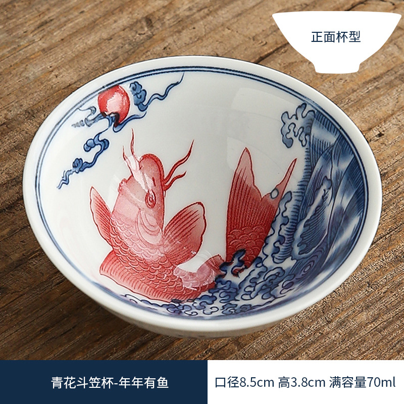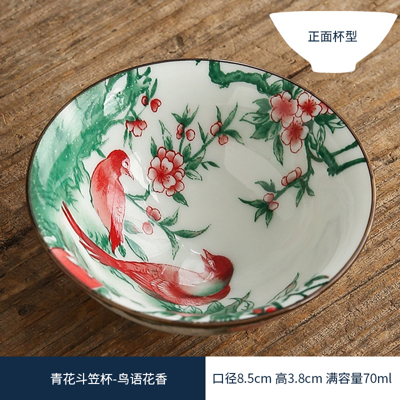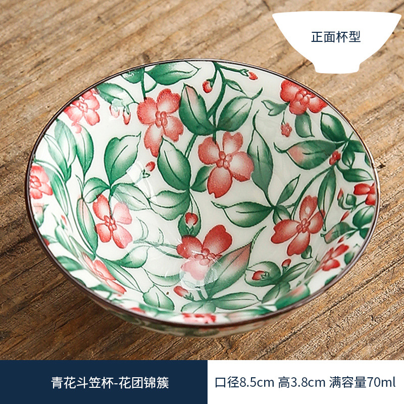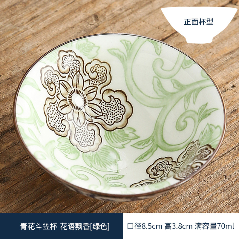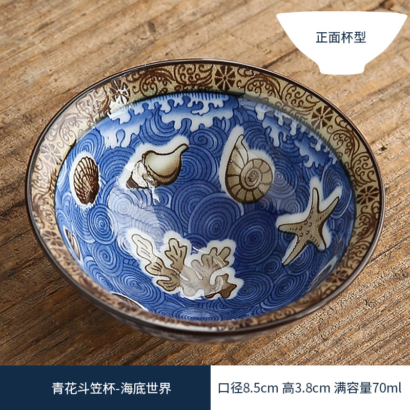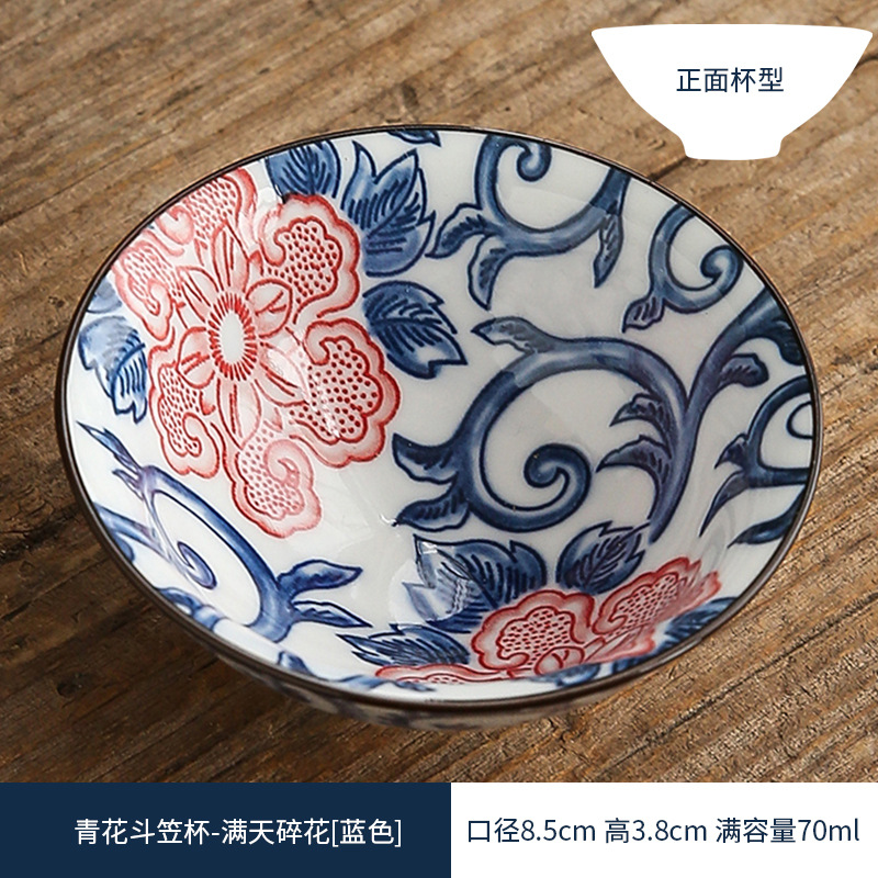 双色青花瓷斗笠杯茶杯陶瓷功夫茶具主人杯日式茶盏单杯品茗杯茶碗