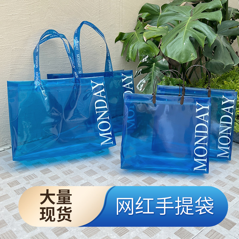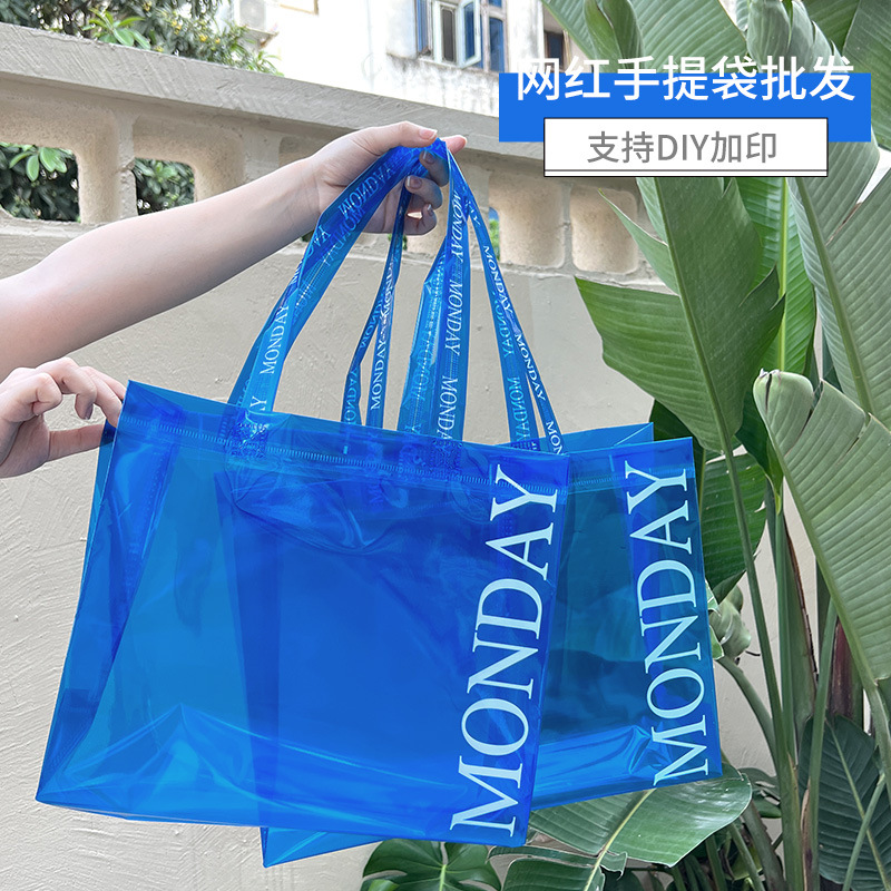 透明袋子批发手提网红防水手提袋 pvc塑料袋服装打包袋礼袋手拎袋