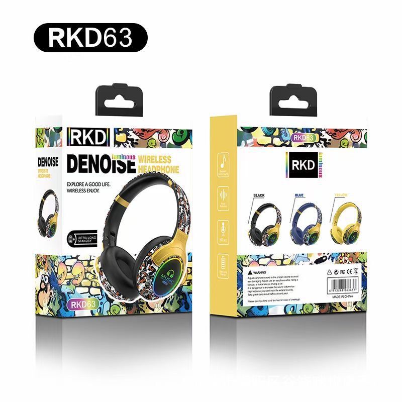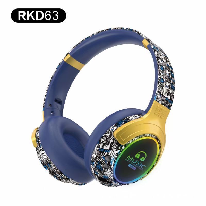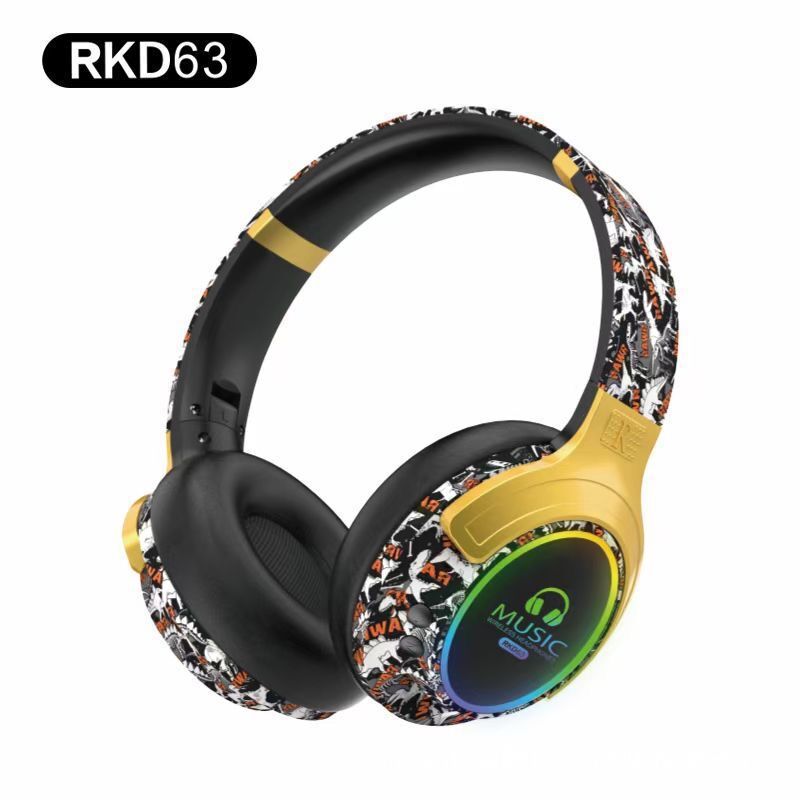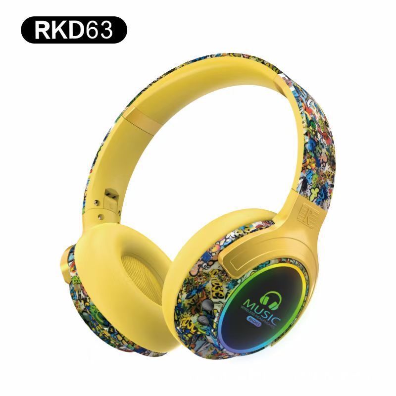 RKD63头戴式新款耳机无线蓝牙音乐耳麦立体声带灯涂鸦工艺
