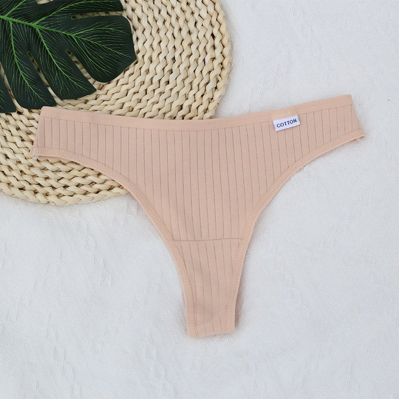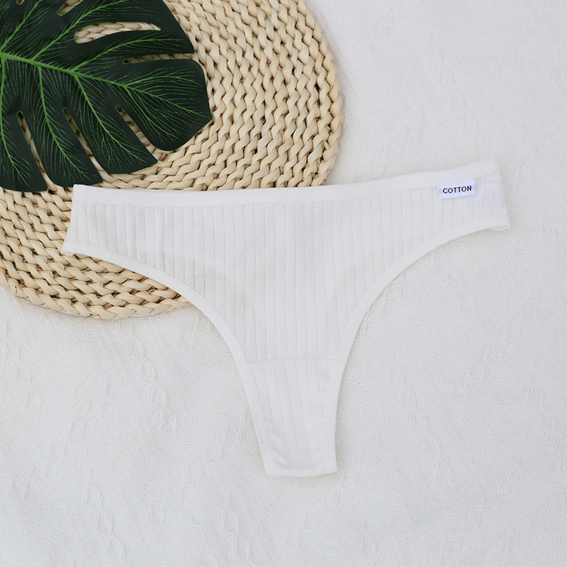跨境40支坑条纯棉丁字裤女 低腰性感隐形无痕诱惑t裤欧美运动内裤