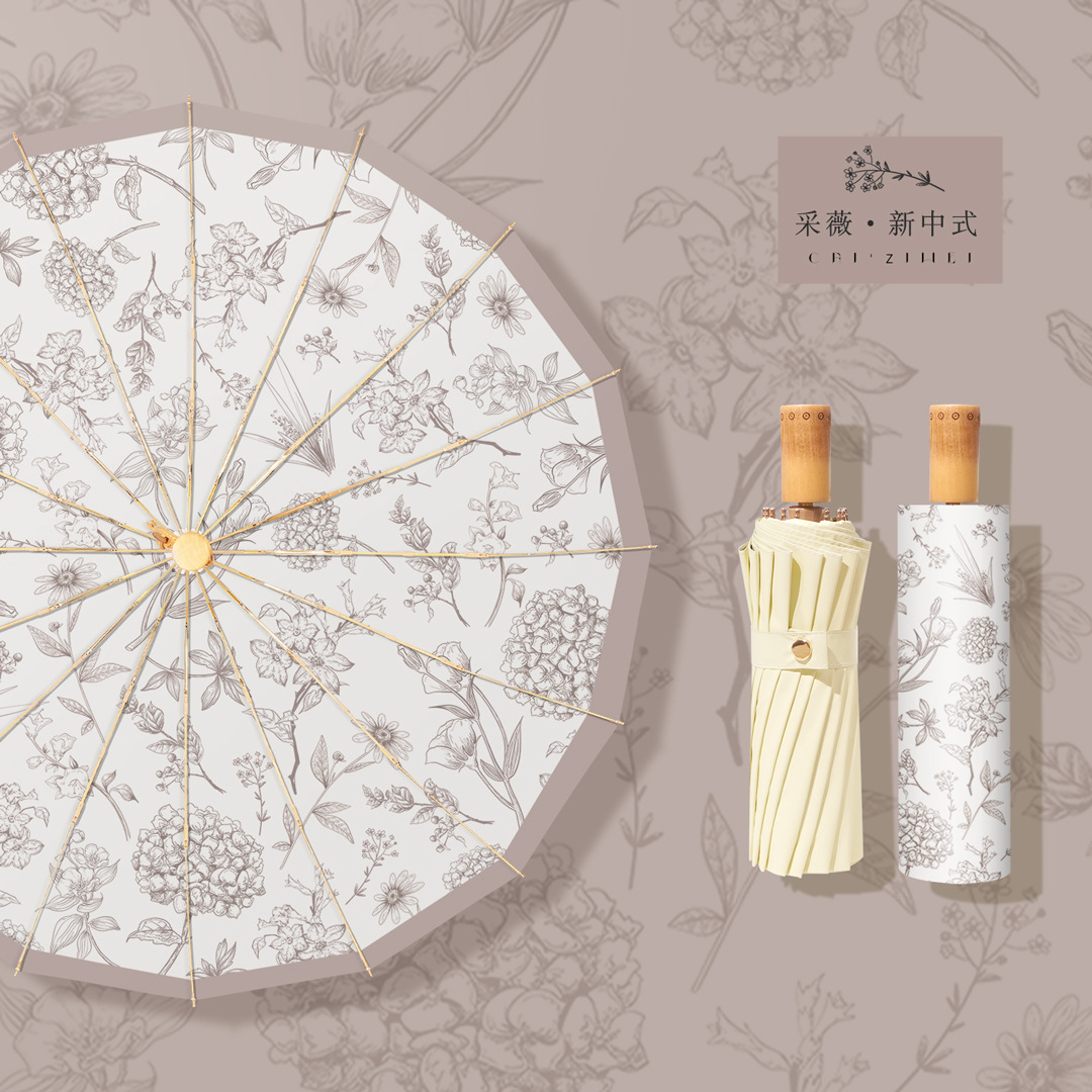 小红书ins复古高颜值16骨彩胶双层太阳伞女生防晒防紫外线遮阳伞