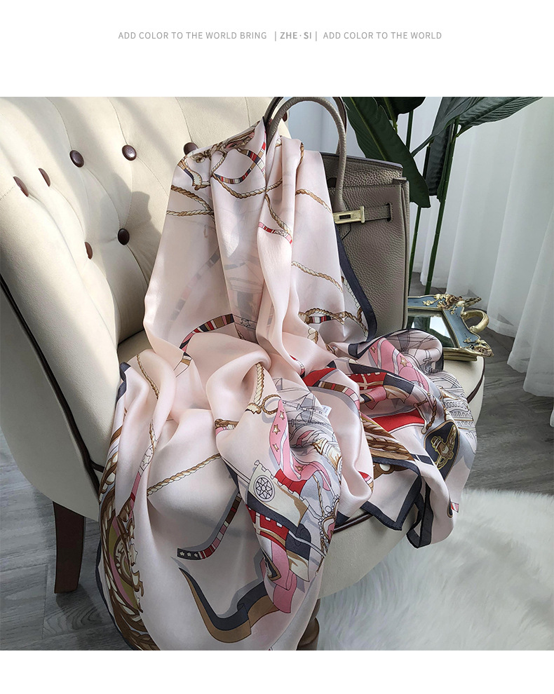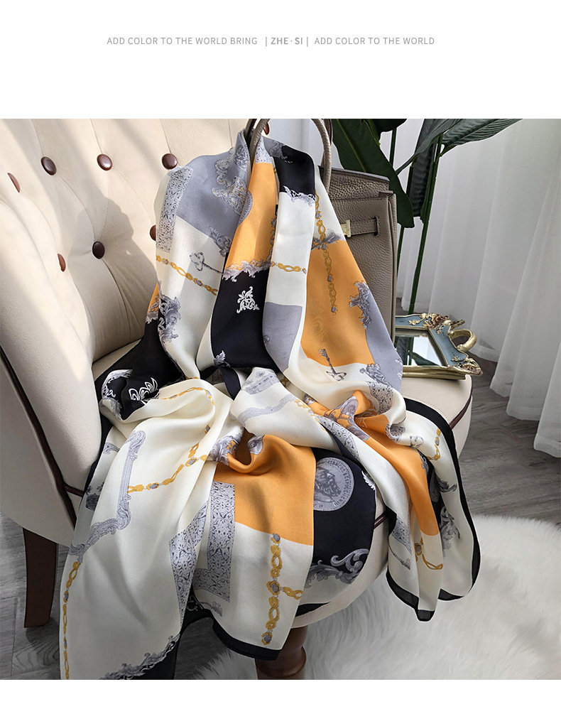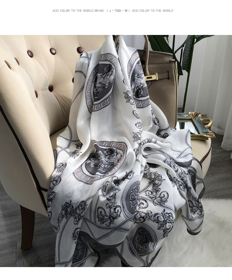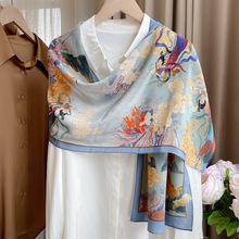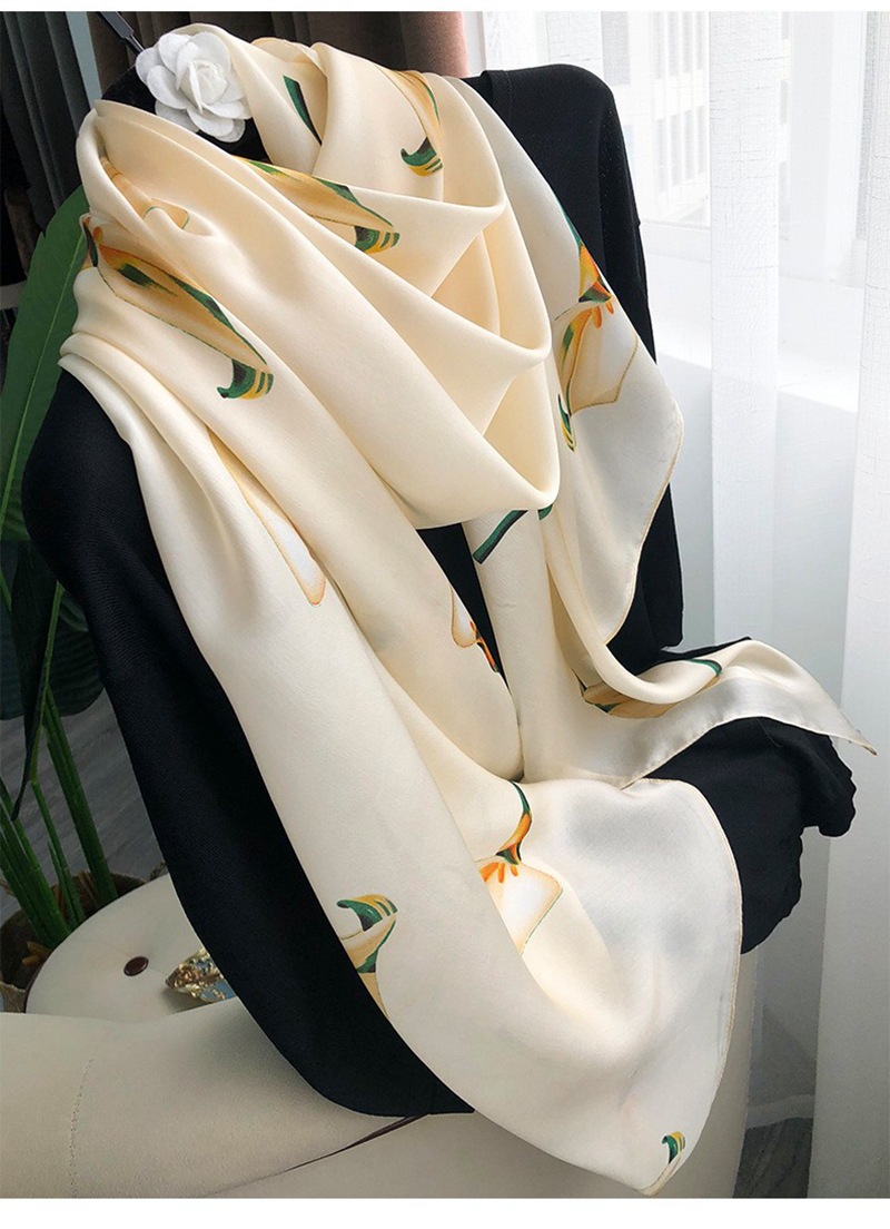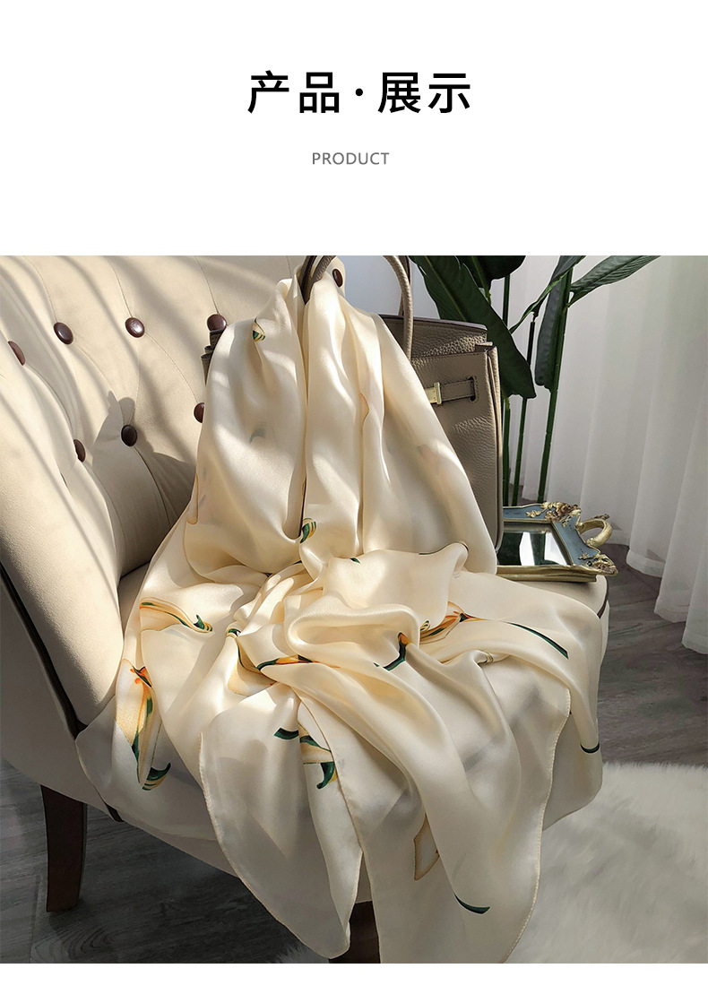 杭州丝绸真丝围巾女百搭韩版轻奢风马蹄莲长款桑蚕丝丝巾防嗮披肩
