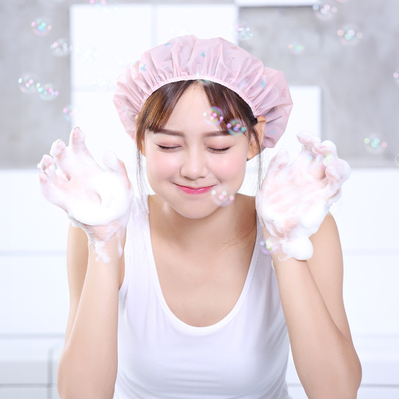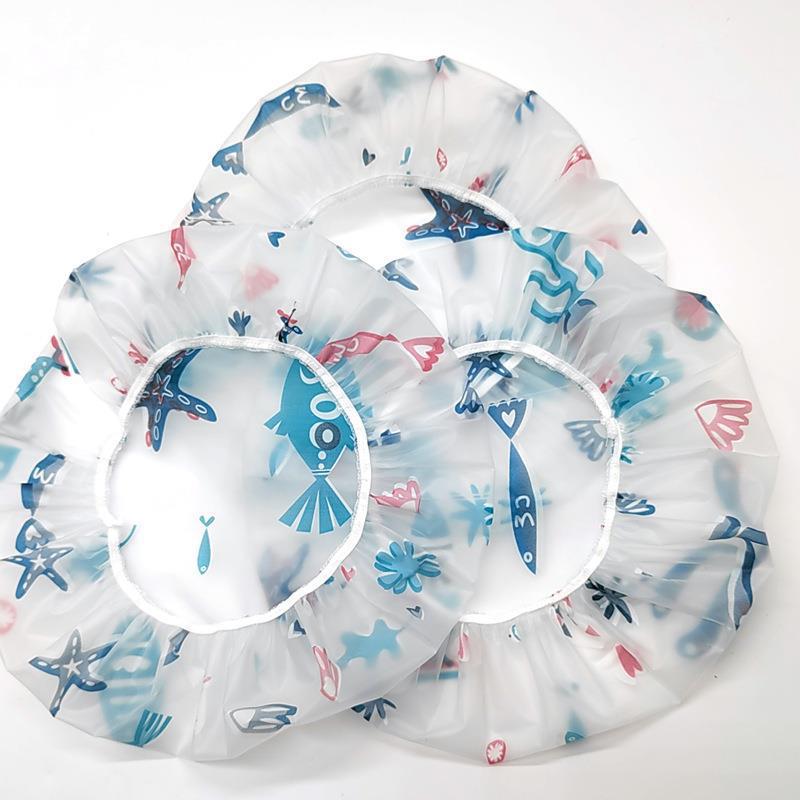 通用卡通透明加大加厚PEVA浴帽防水印花淋浴帽泡澡帽高档头套