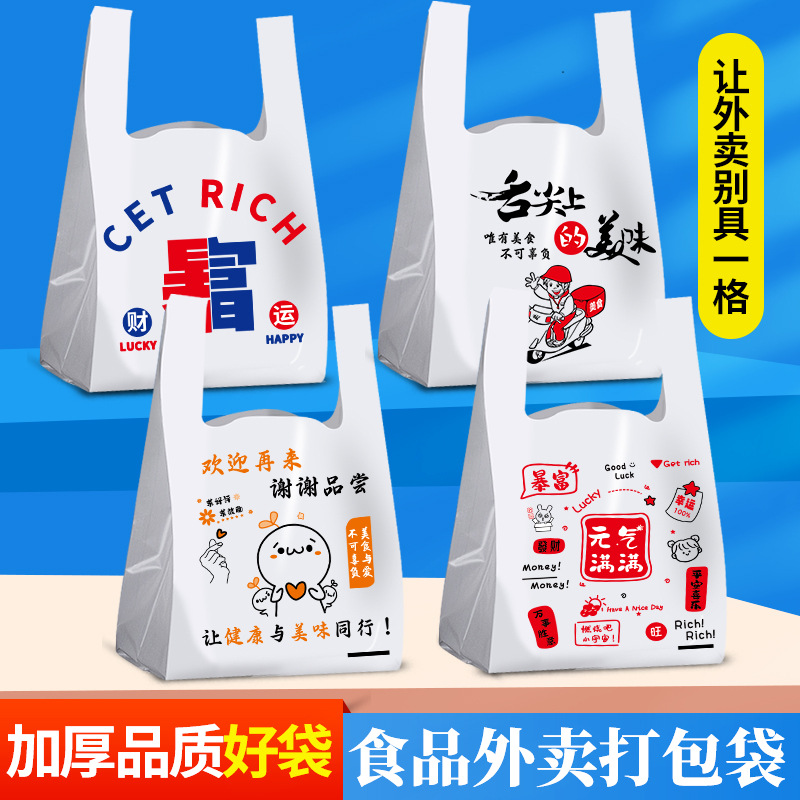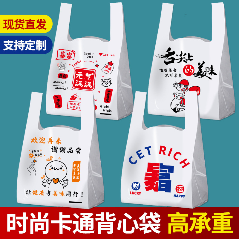 外卖打包袋加厚批发卡通背心袋一次性塑料袋网红快餐袋包装袋