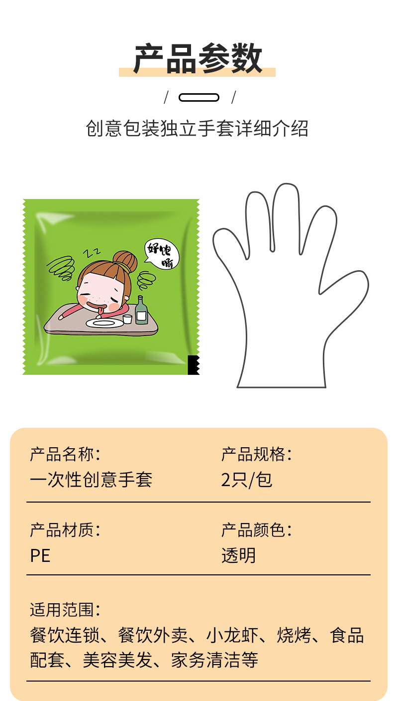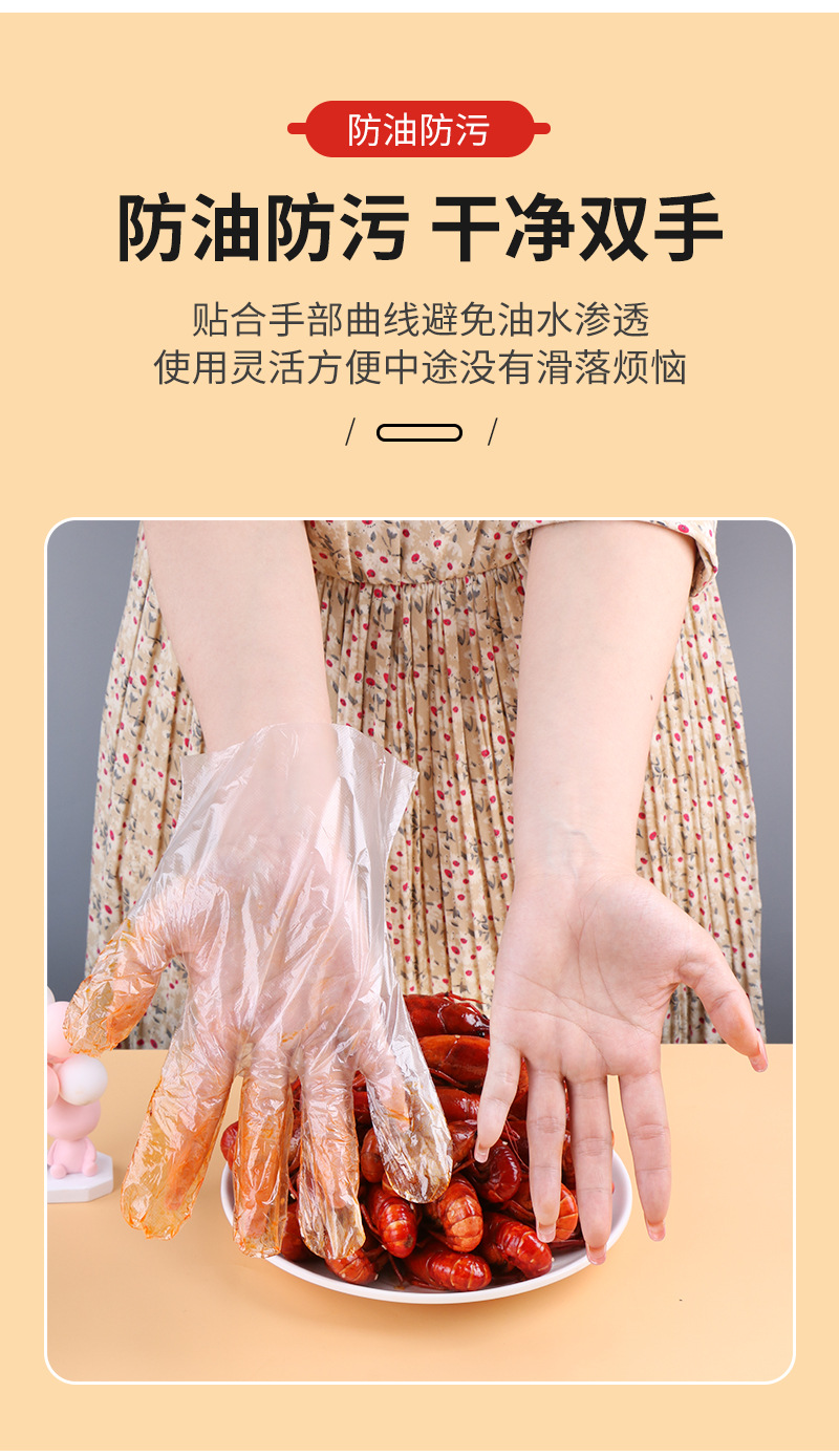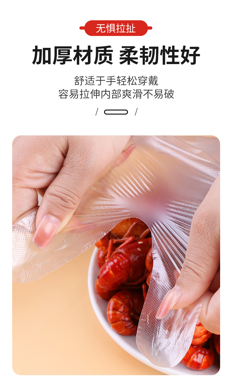 一次性手套独立包装加厚pe龙虾外卖炸鸡餐饮PE透明手套可印刷logo