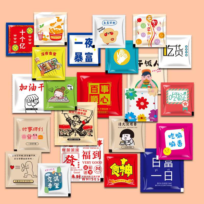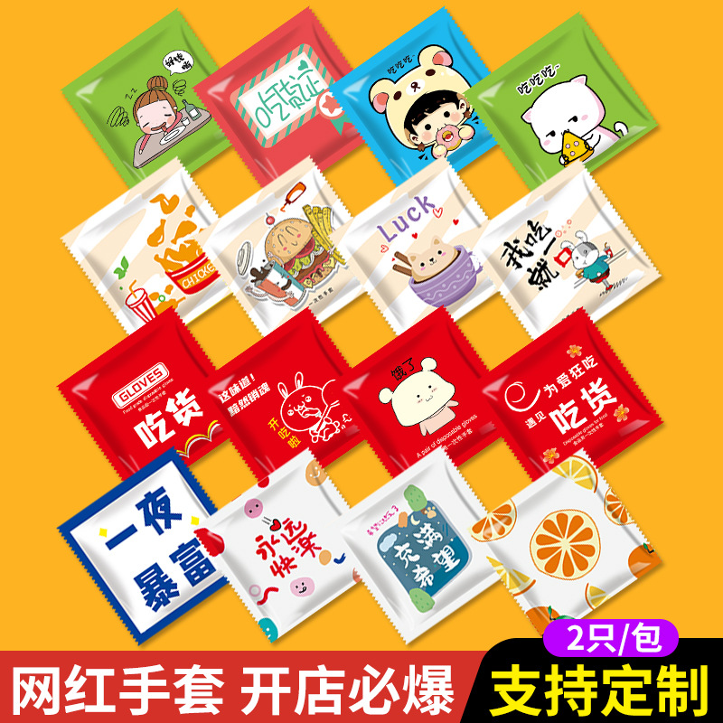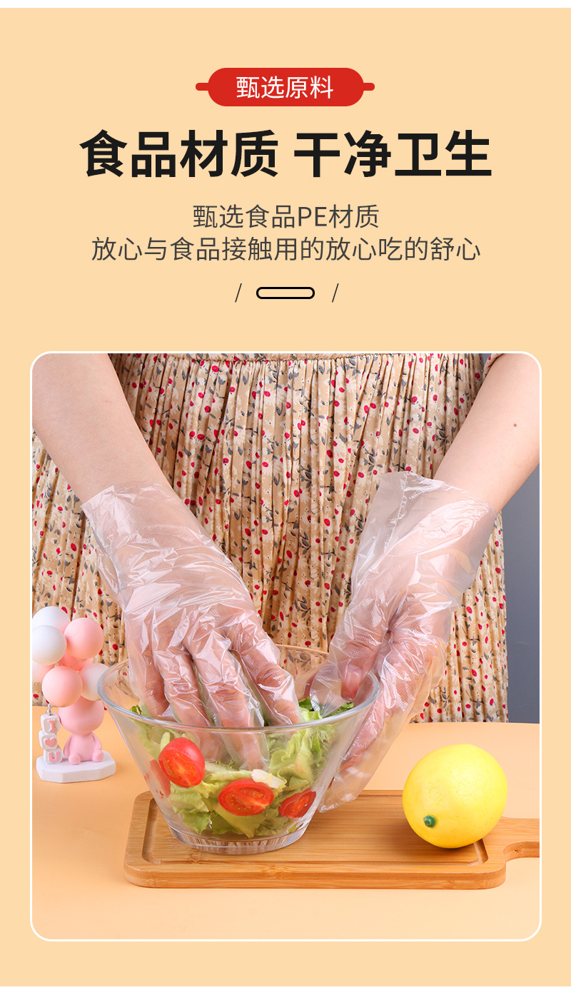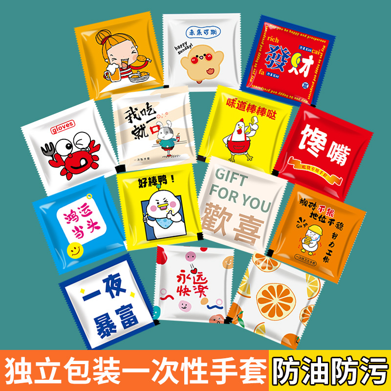一次性手套独立包装加厚pe龙虾外卖炸鸡餐饮PE透明手套可印刷logo
