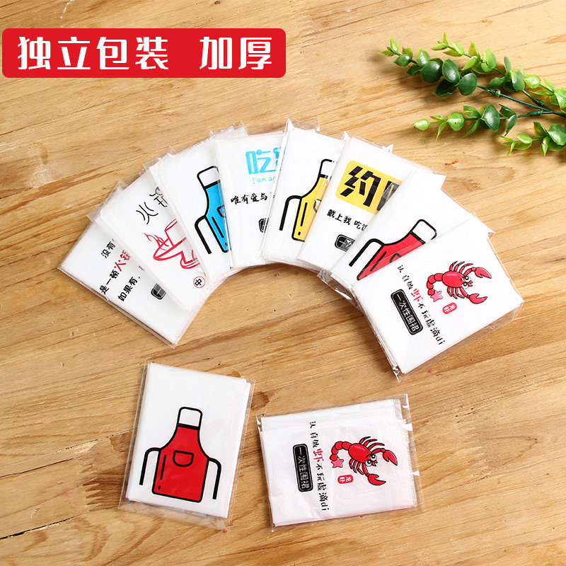 一次性围裙独立包装加厚PE塑料防水成人小龙虾火锅店客人围裙批发