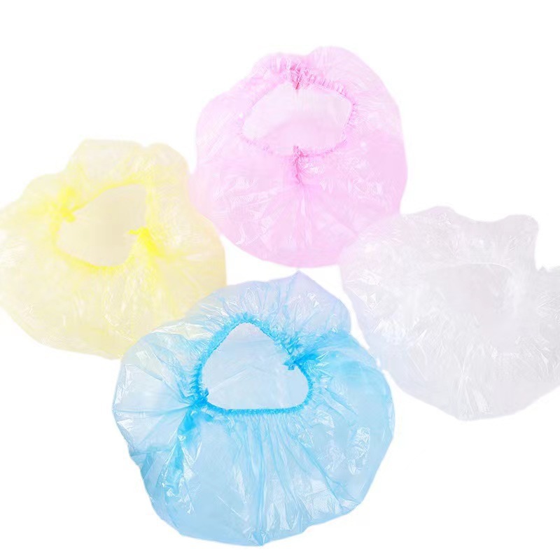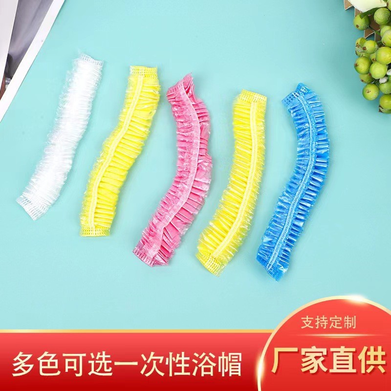一次性浴帽彩色头套松紧口条形状pe加厚酒店宾馆染发焗油洗澡厂家