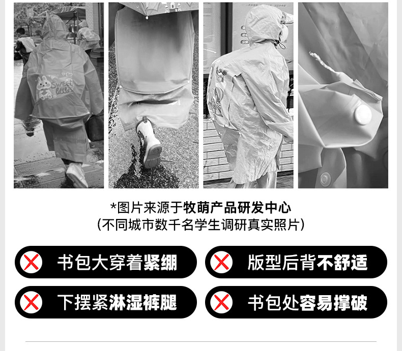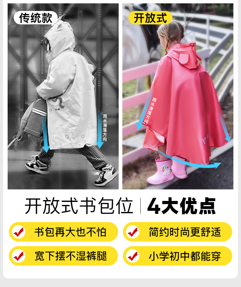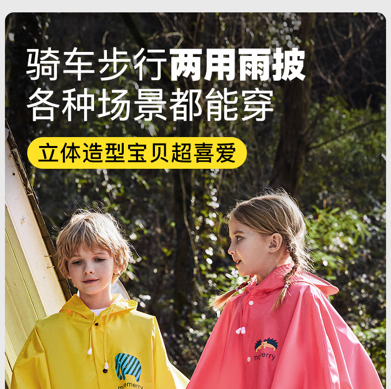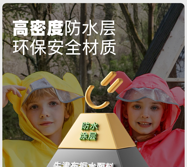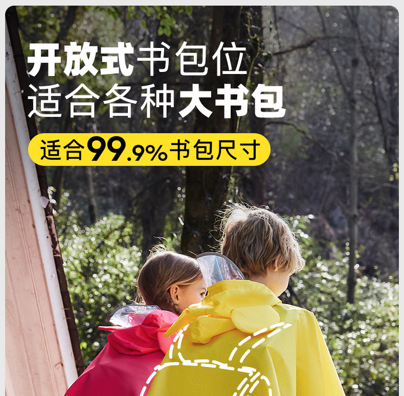 牧萌儿童雨衣韩版带书包位男女学生骑行雨披徒步防水斗篷防水雨衣