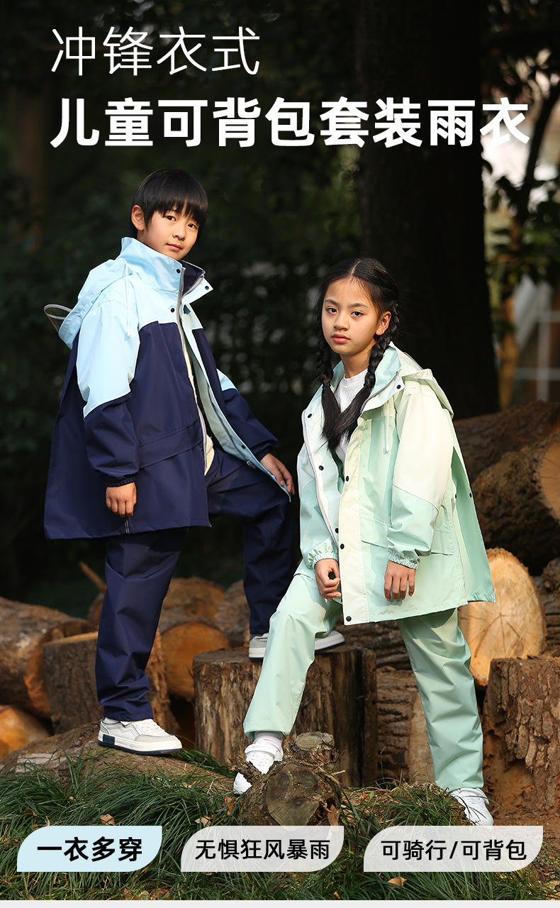 儿童分体雨衣雨裤套装冲锋衣防水全身小学生女男童中大童外套雨披