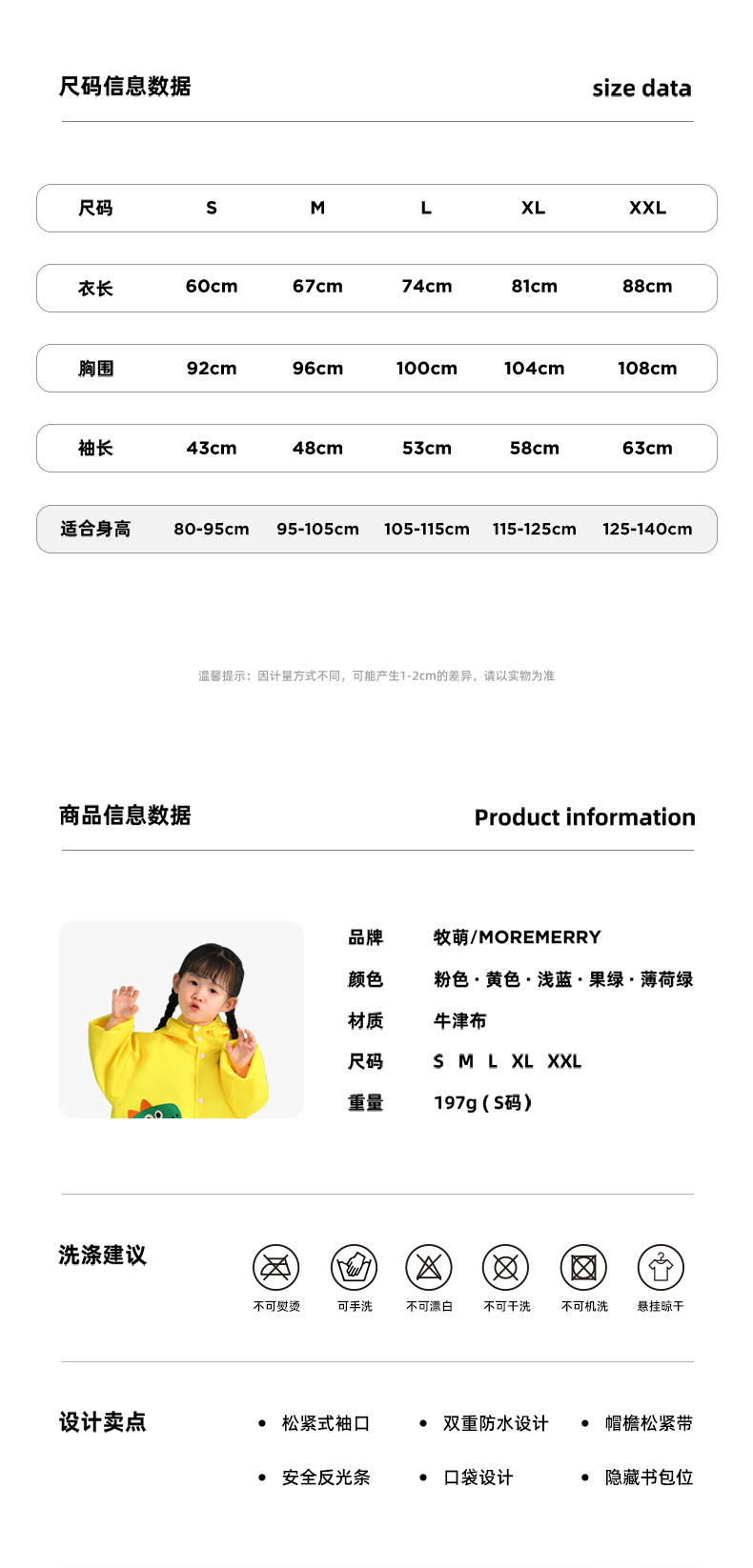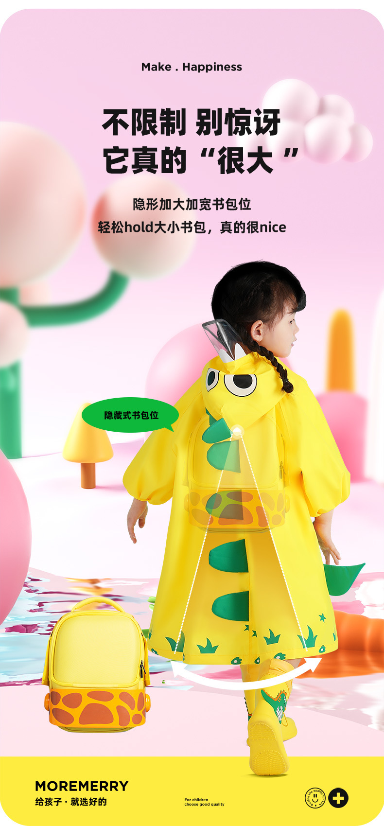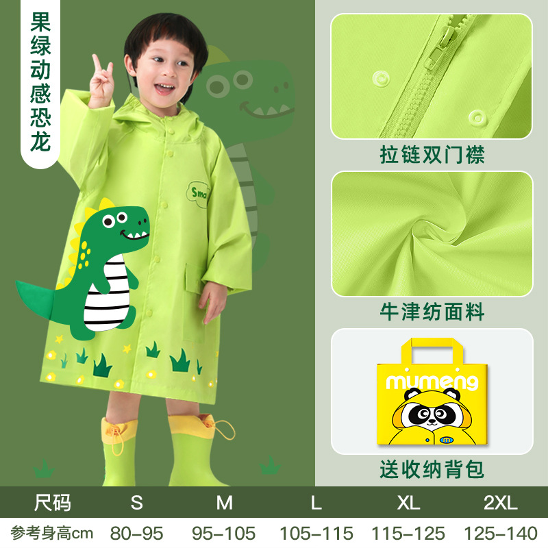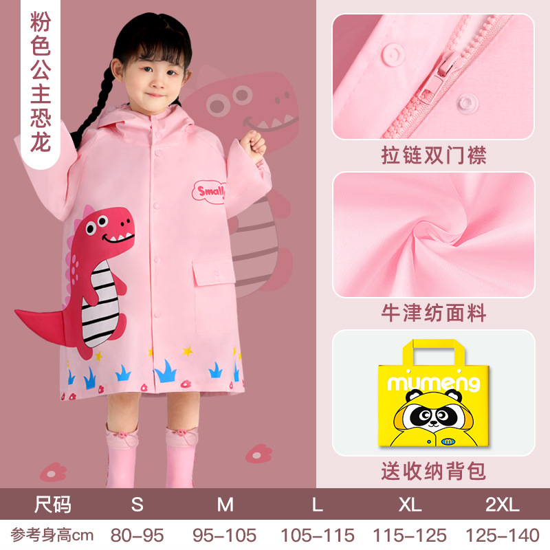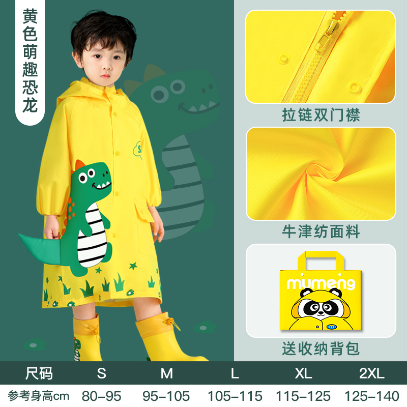 牧萌男女童雨衣幼儿园小学生卡通雨披 小孩带书包位恐龙小童雨具