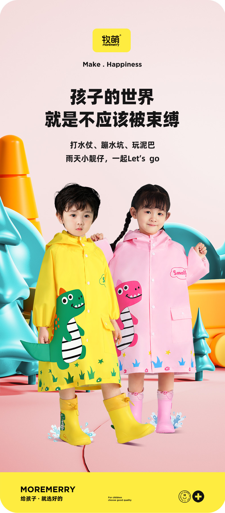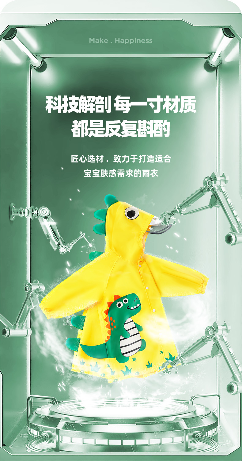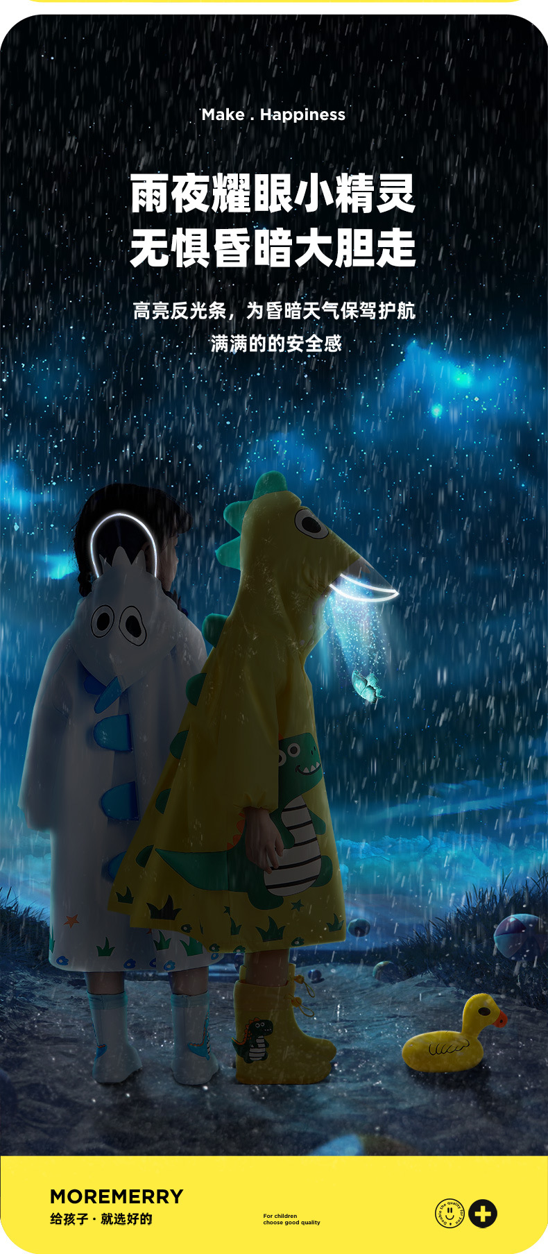 牧萌男女童雨衣幼儿园小学生卡通雨披 小孩带书包位恐龙小童雨具