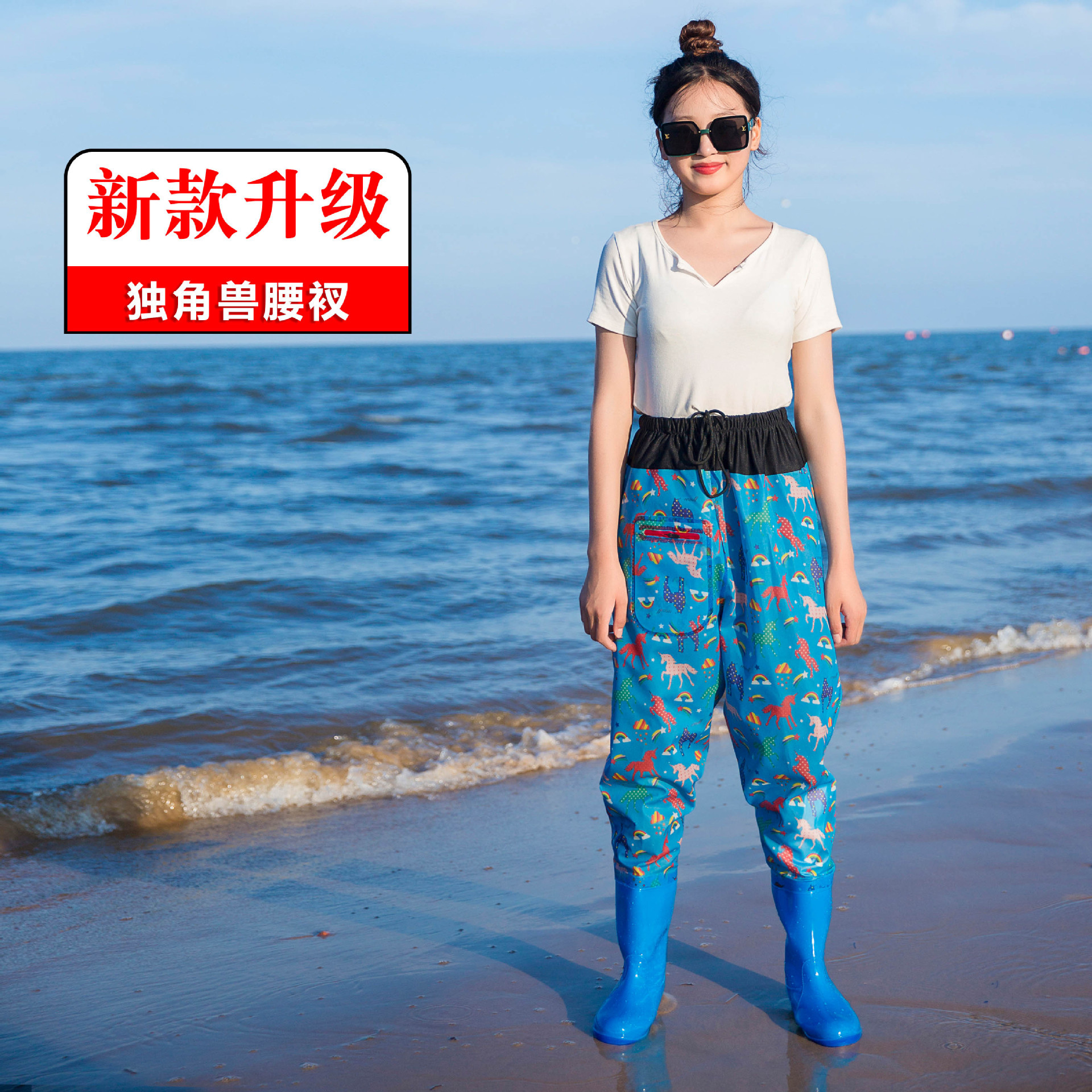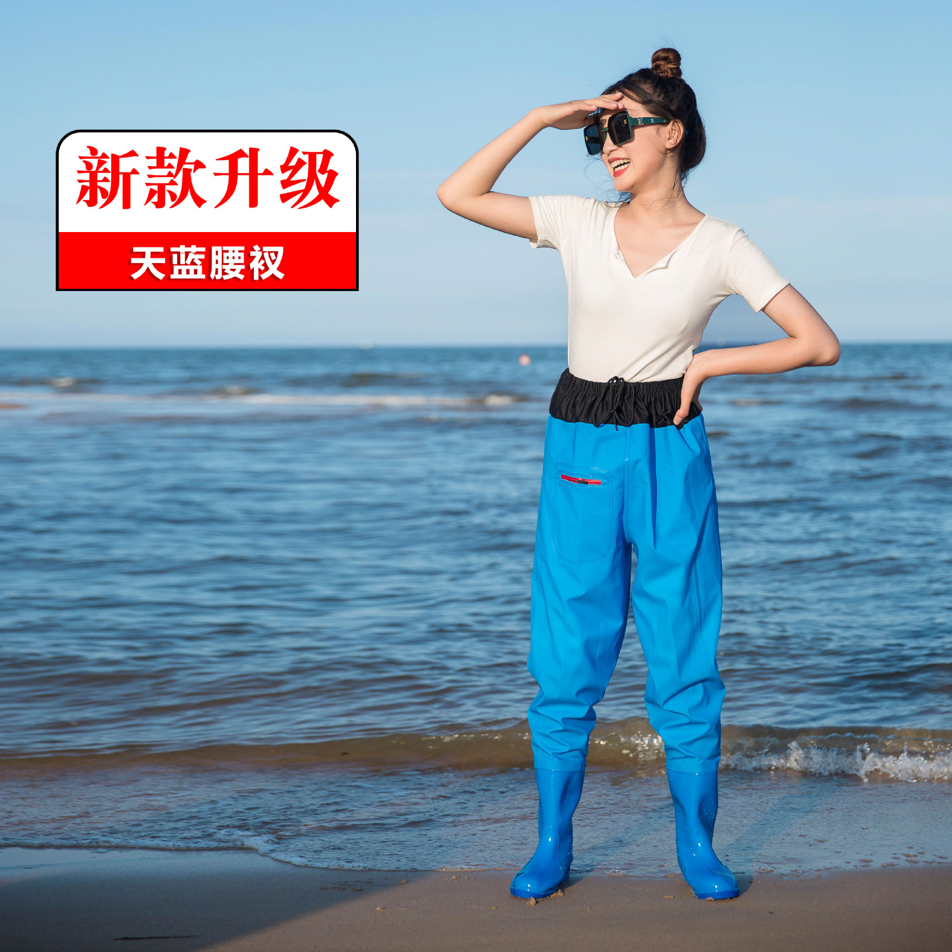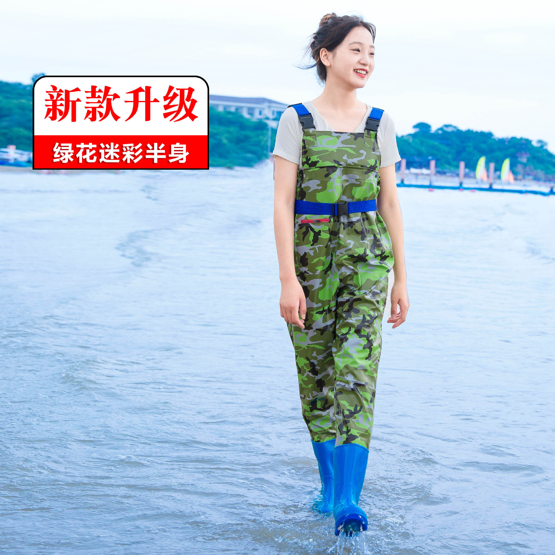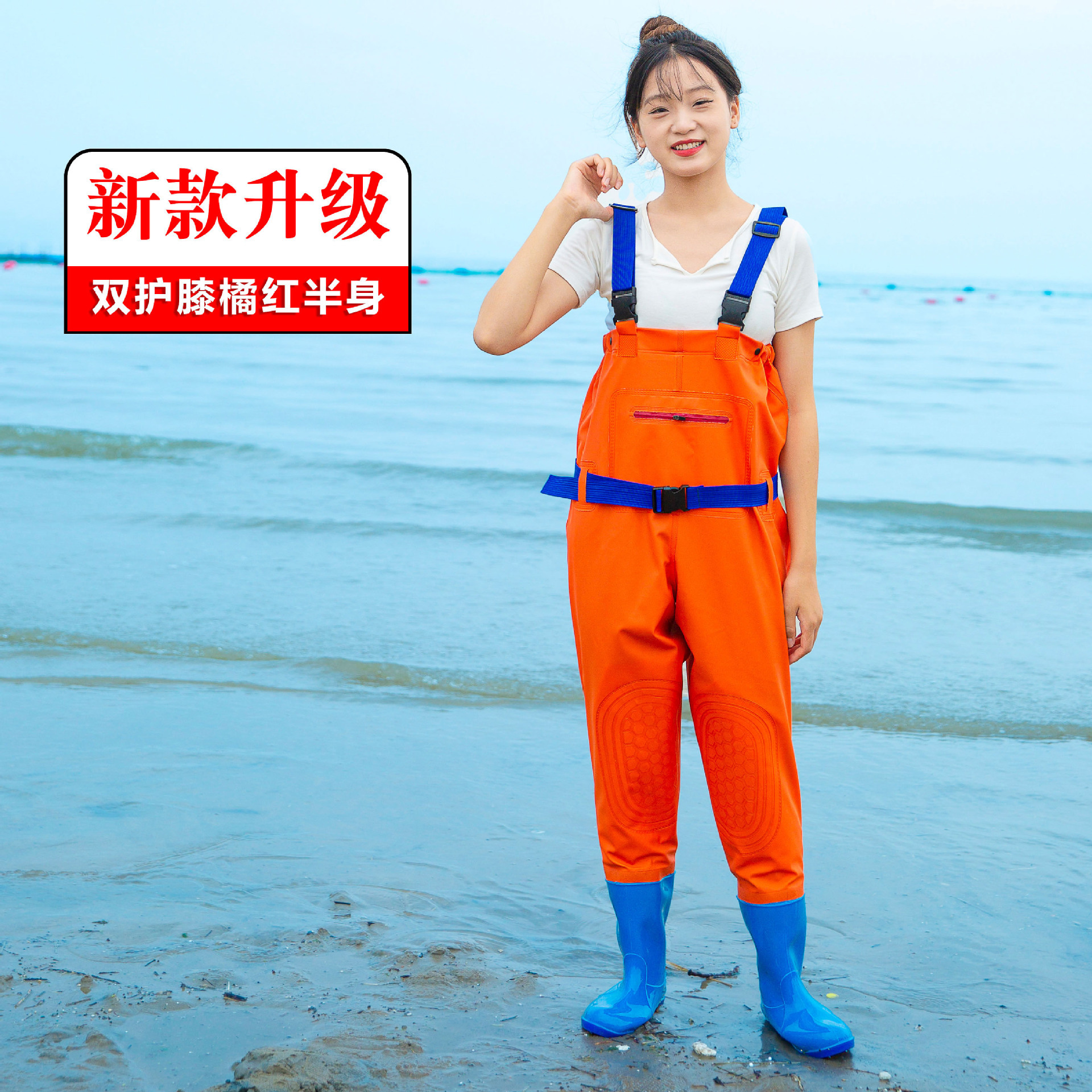 女款下水裤半身雨裤防水衣服女抓捕鱼连体全身渔皮叉水衩裤子加厚