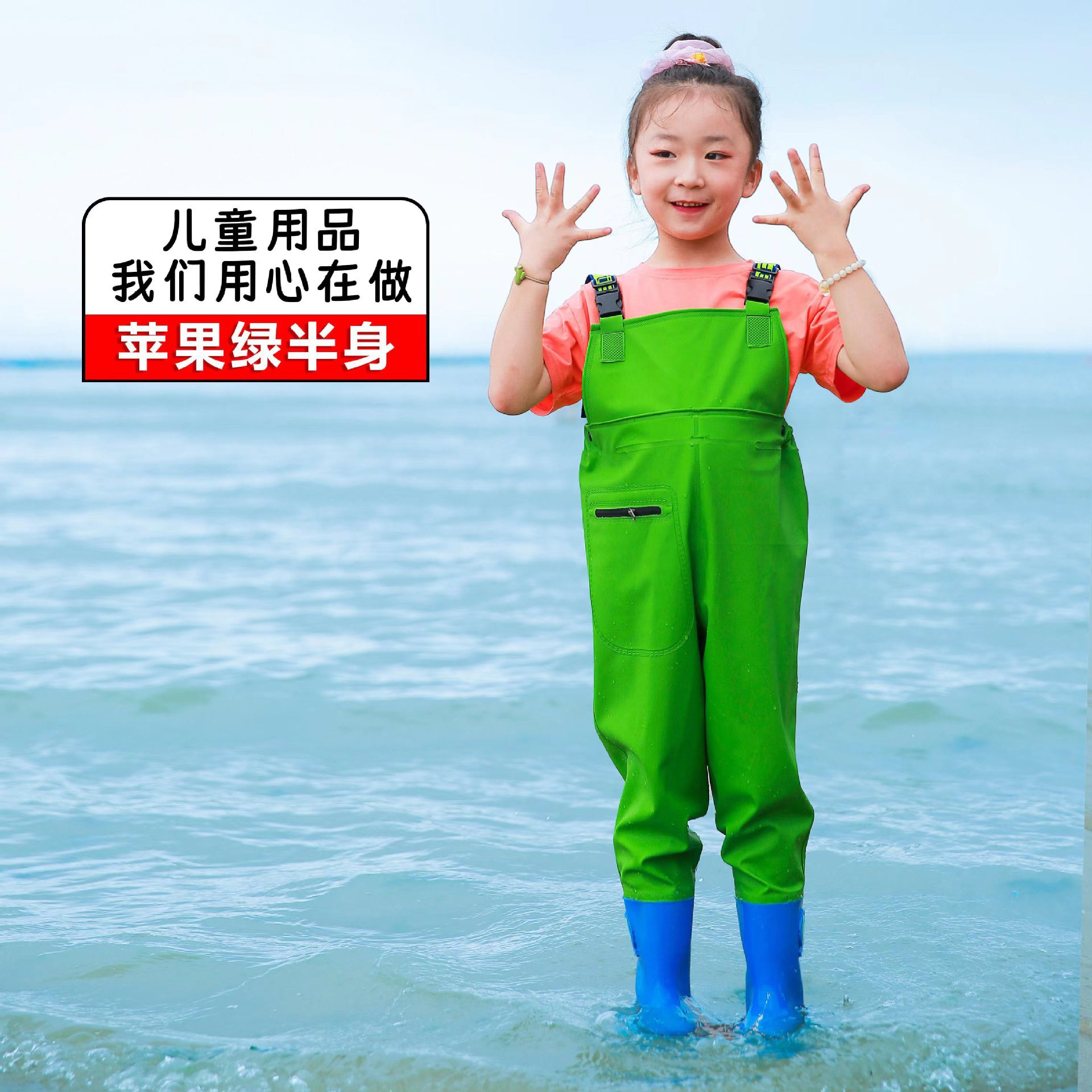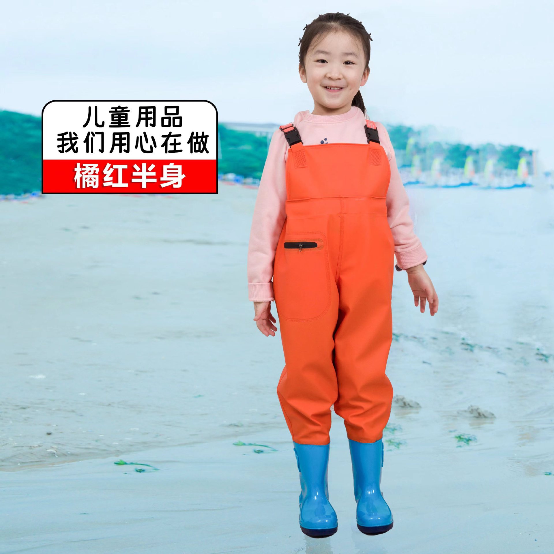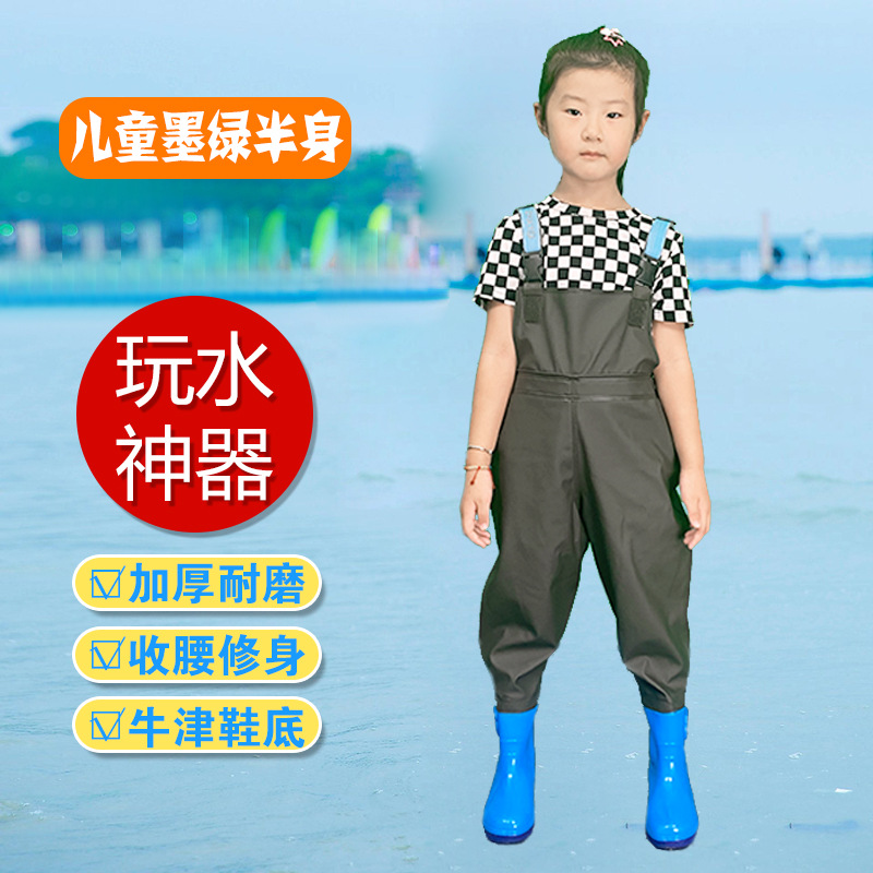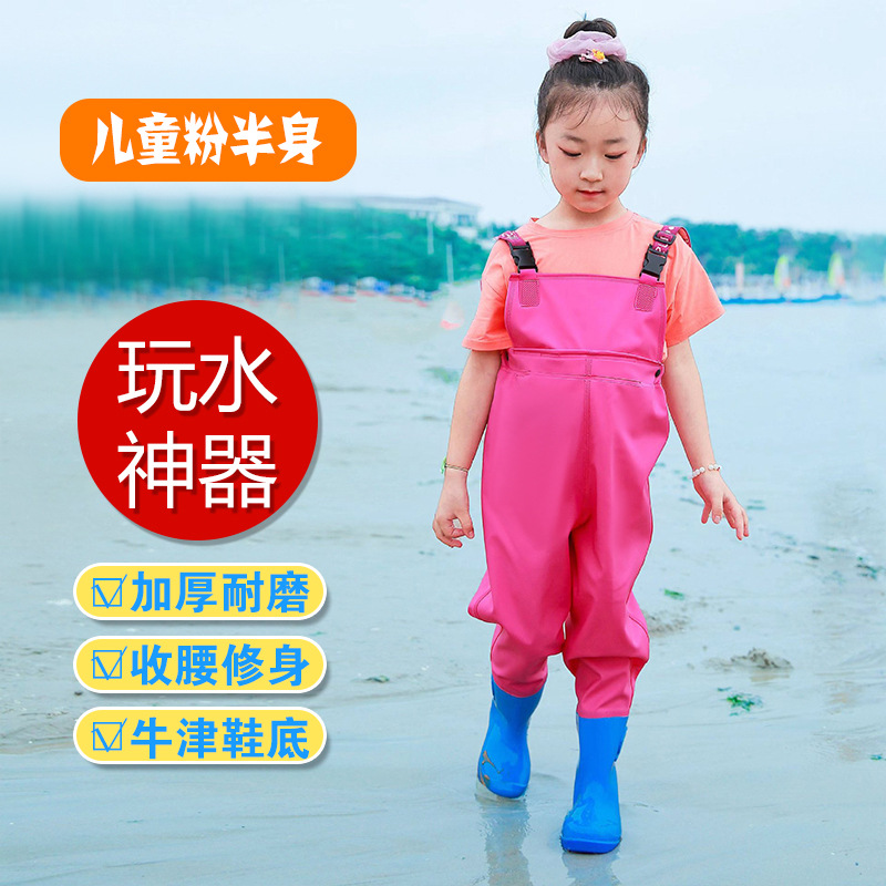 儿童连体雨裤涉水裤下水裤幼儿园玩沙衣服捕鱼小孩玩水雨鞋男女童