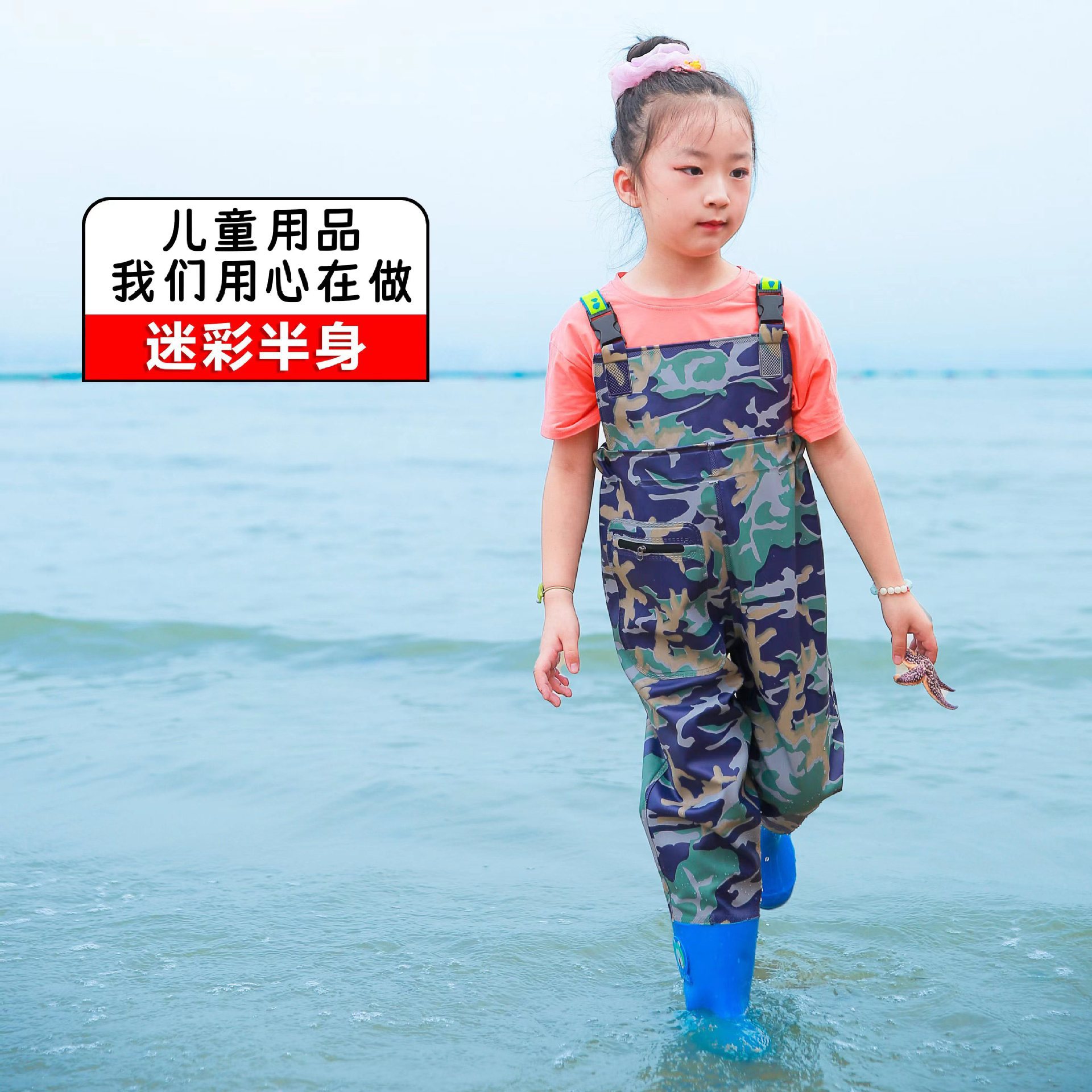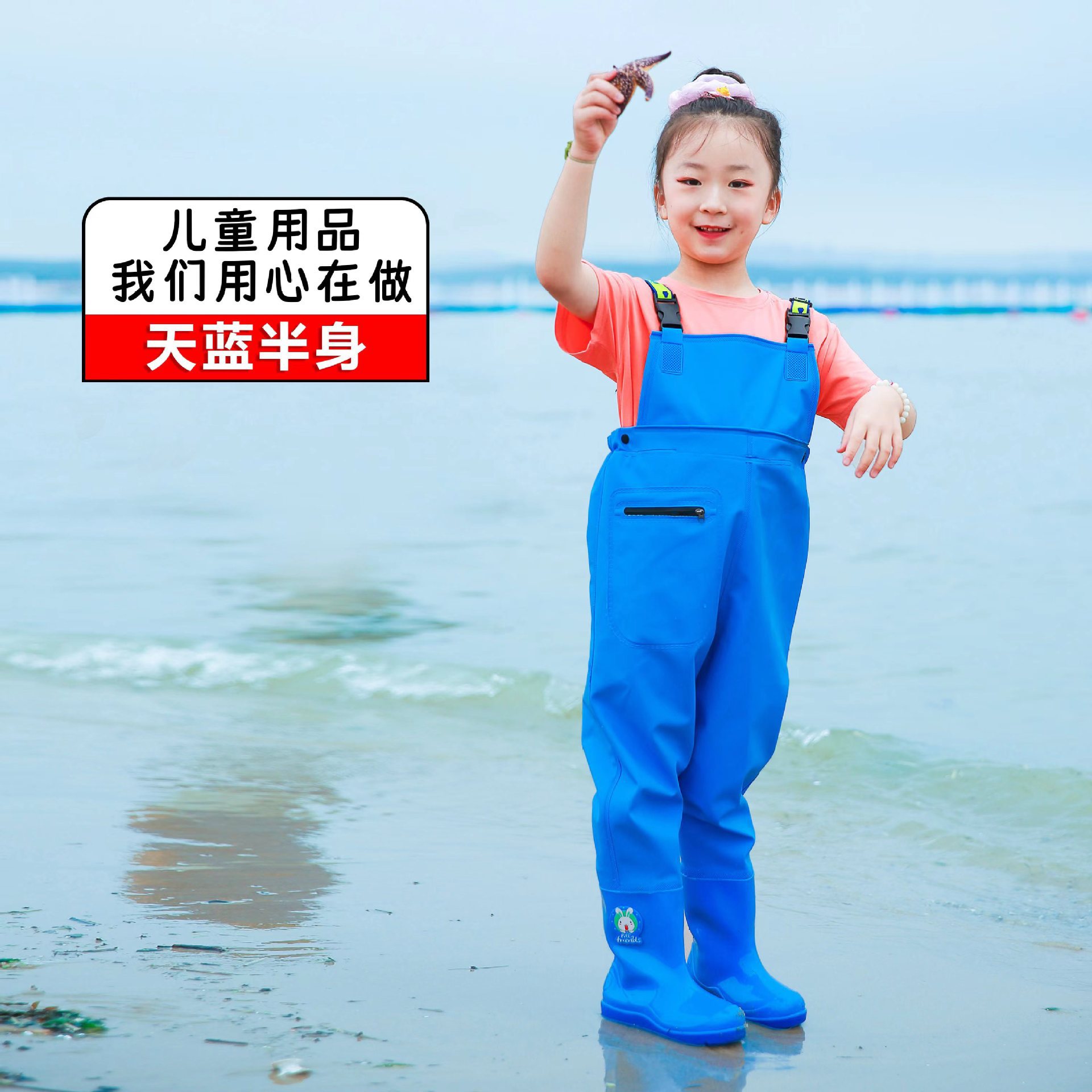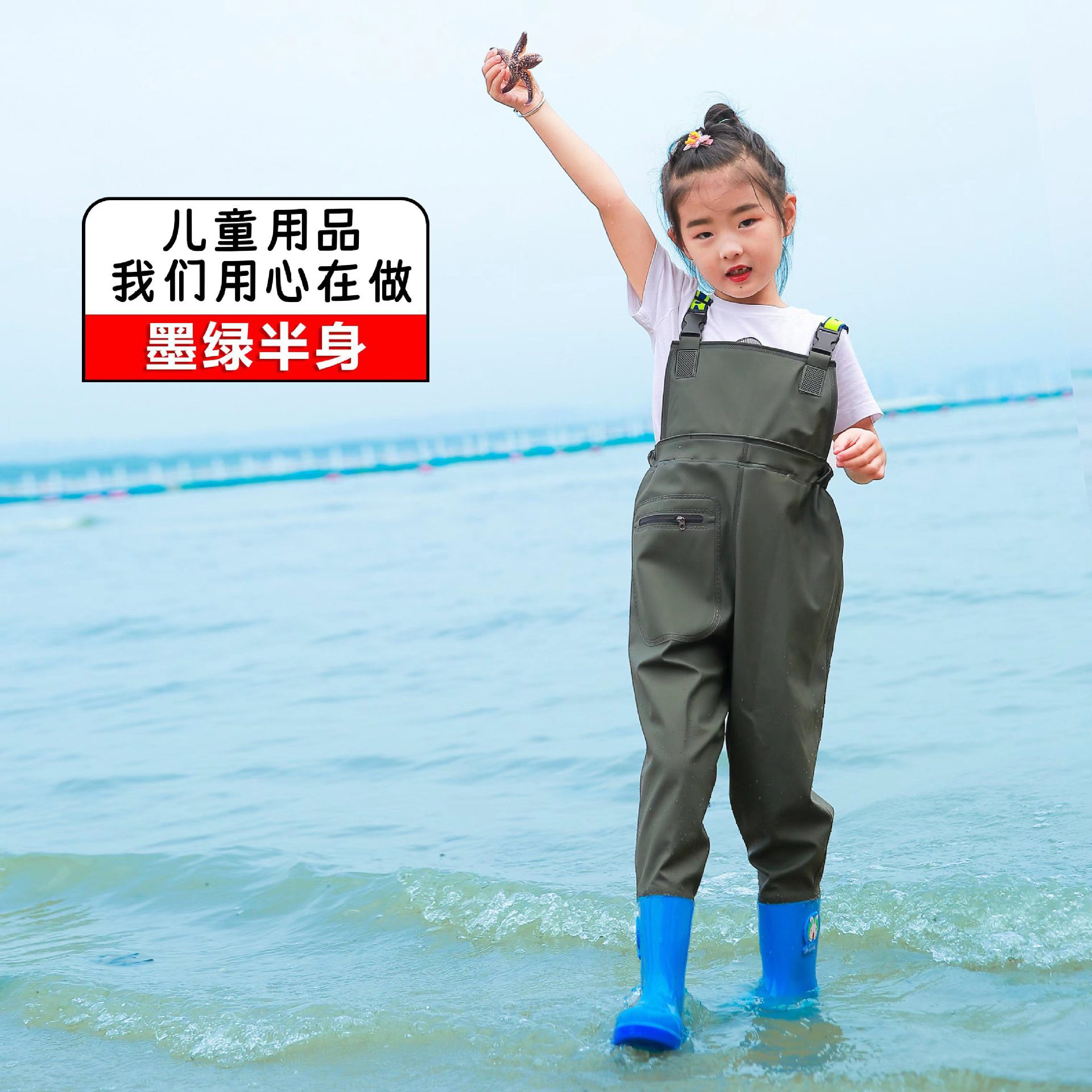 儿童连体雨裤涉水裤下水裤幼儿园玩沙衣服捕鱼小孩玩水雨鞋男女童