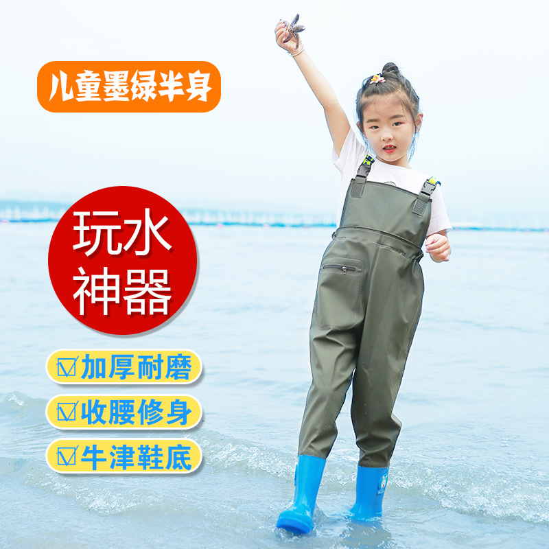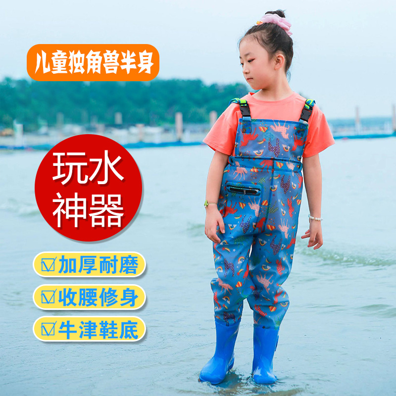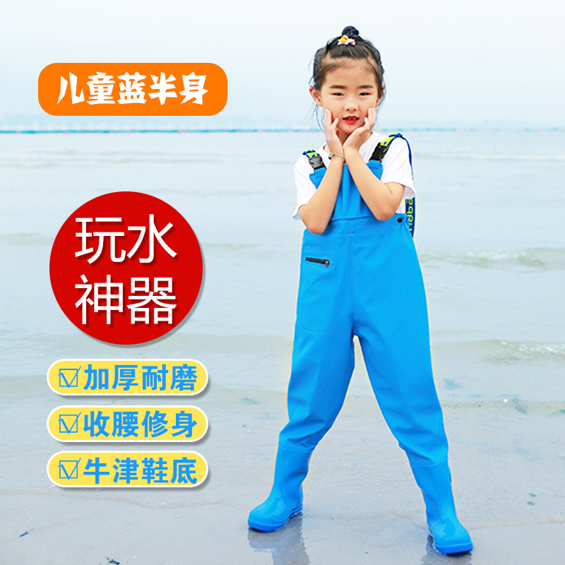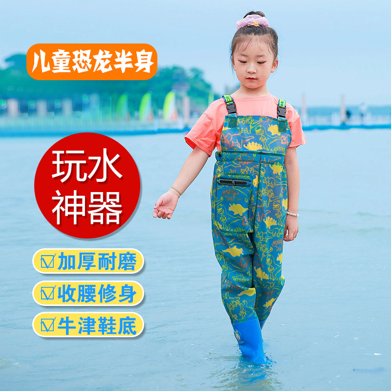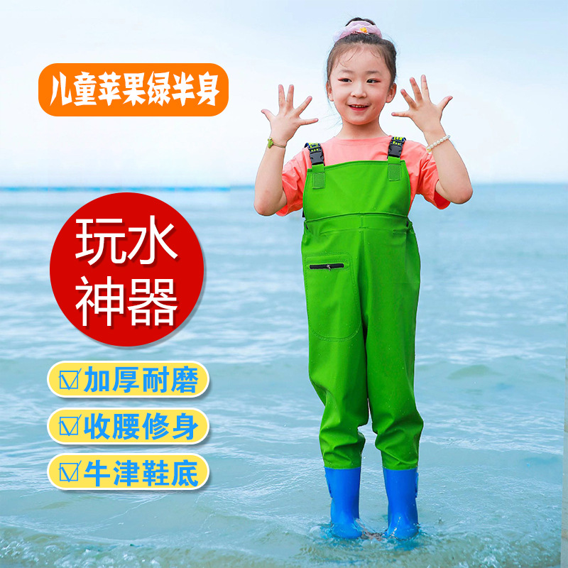 皮衩连体儿童下水裤涉水裤全身水裤捕鱼衣赶海防水衣小孩玩水涉水
