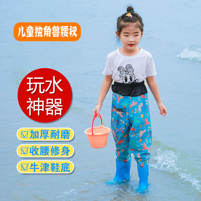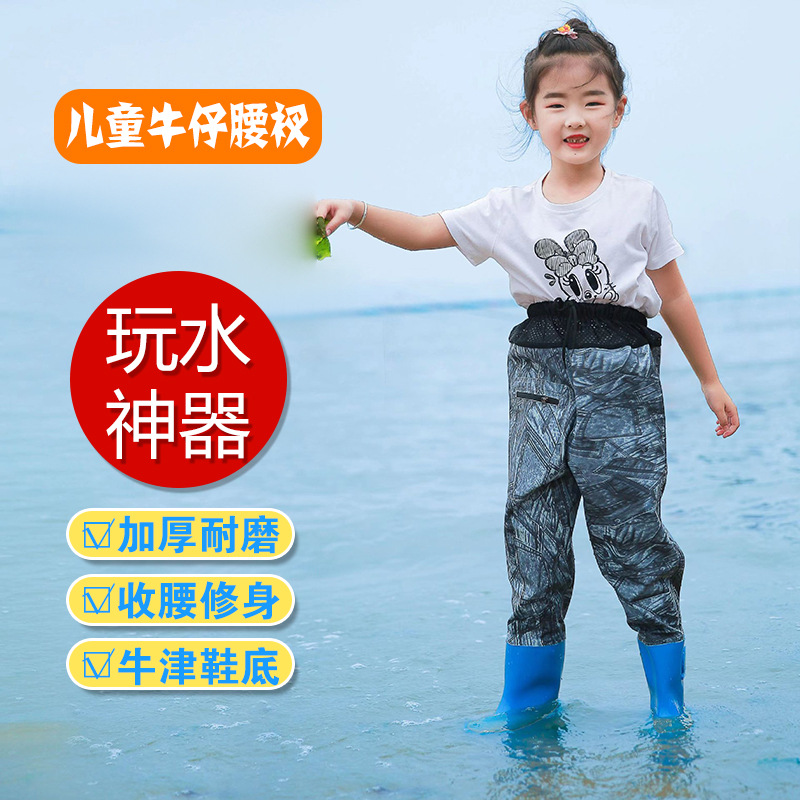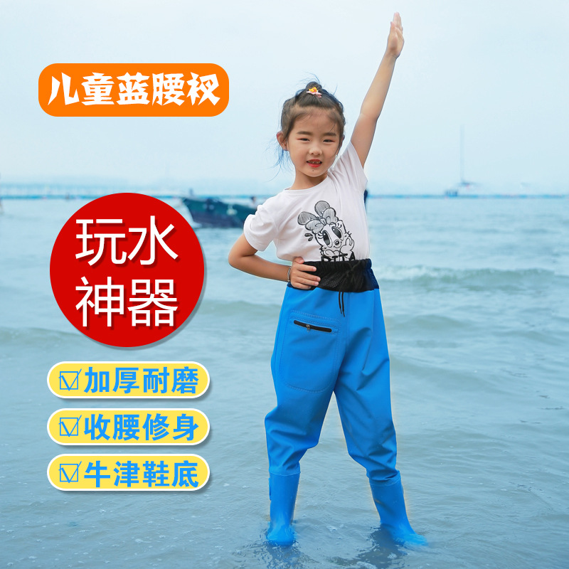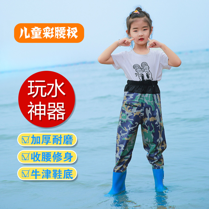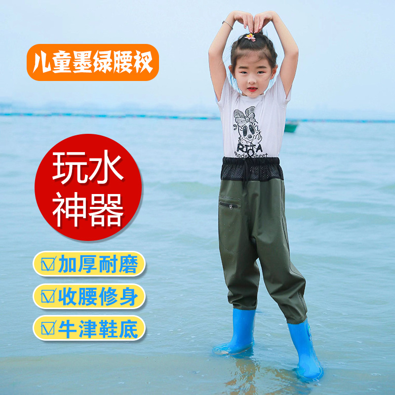 皮衩连体儿童下水裤涉水裤全身水裤捕鱼衣赶海防水衣小孩玩水涉水