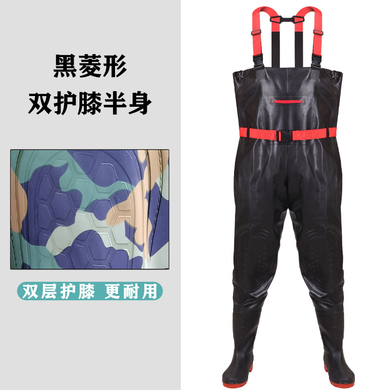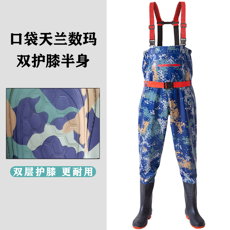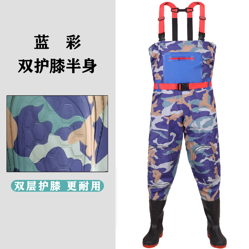 双护膝新款下水裤半身雨裤防水衣服男抓钓捕鱼连体渔皮叉水衩裤子