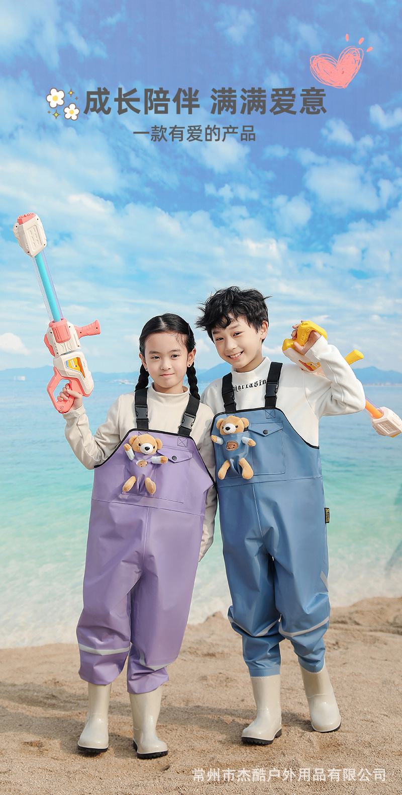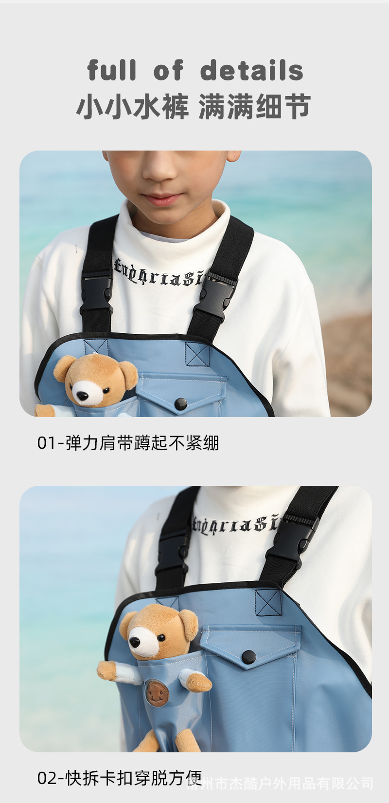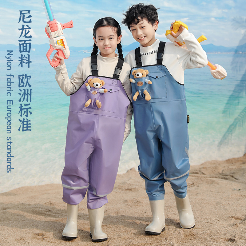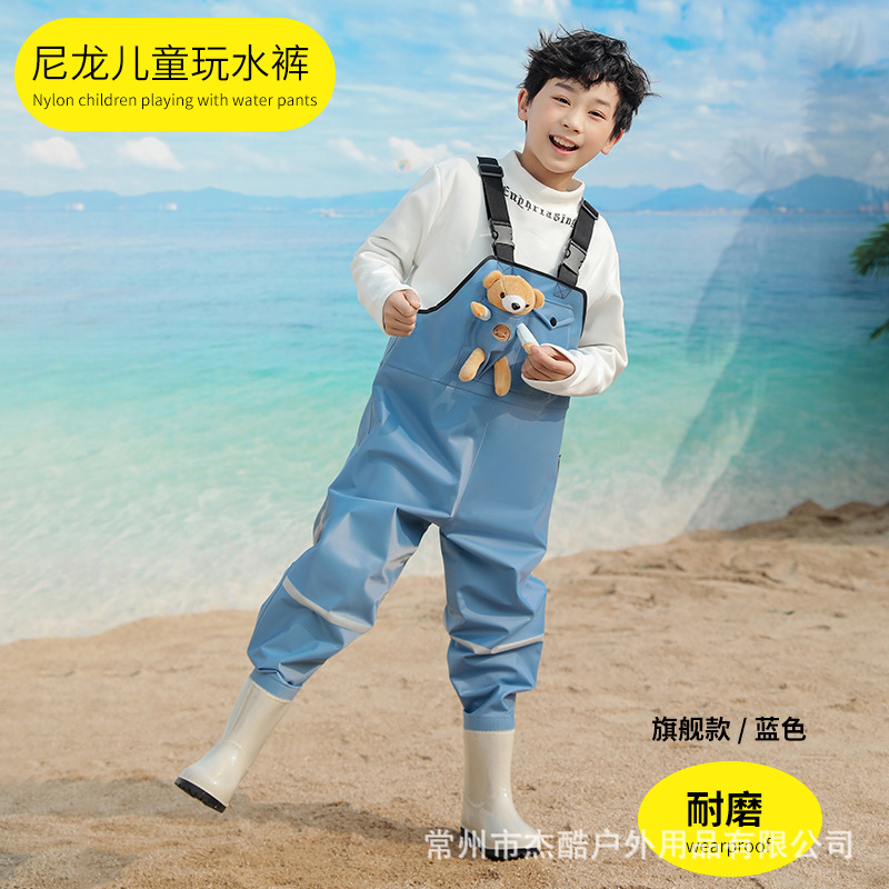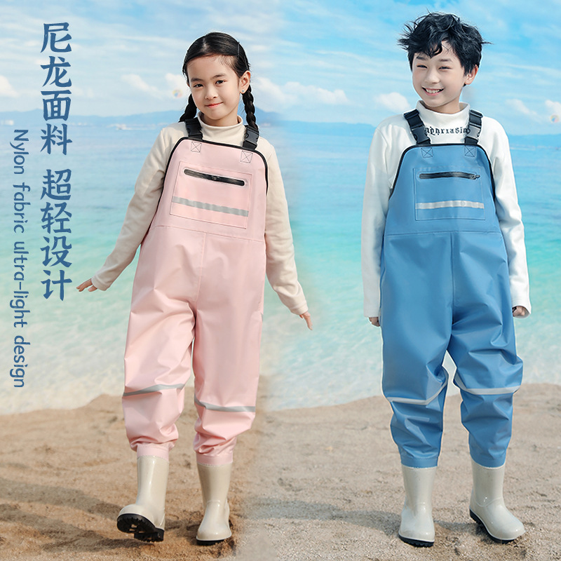 尼龙透气轻薄涉水夏季背带连体玩水捞鱼渔夫服儿童下水裤玩沙服