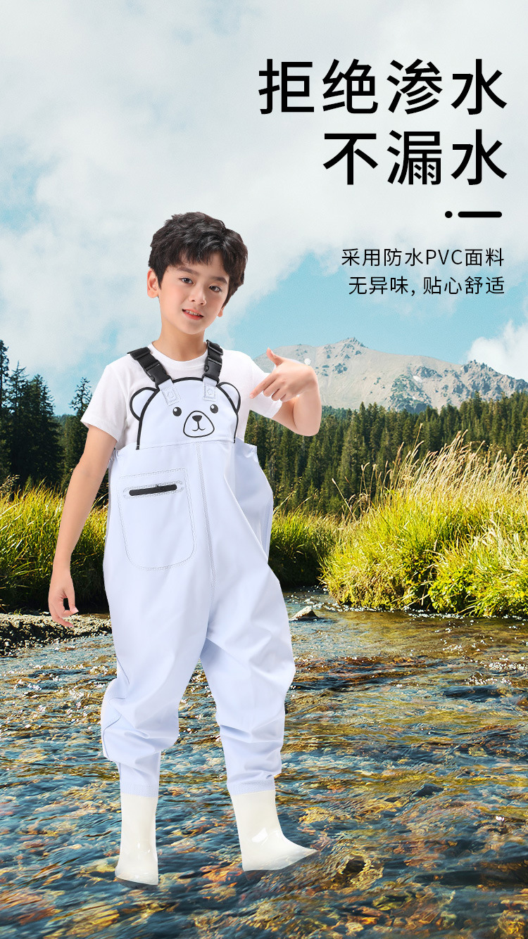 儿童下水裤防水水裤玩水捕鱼连体水衣全身鱼裤赶海装备涉水服批发