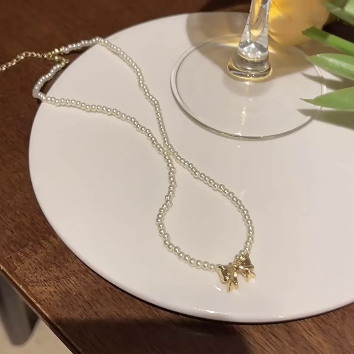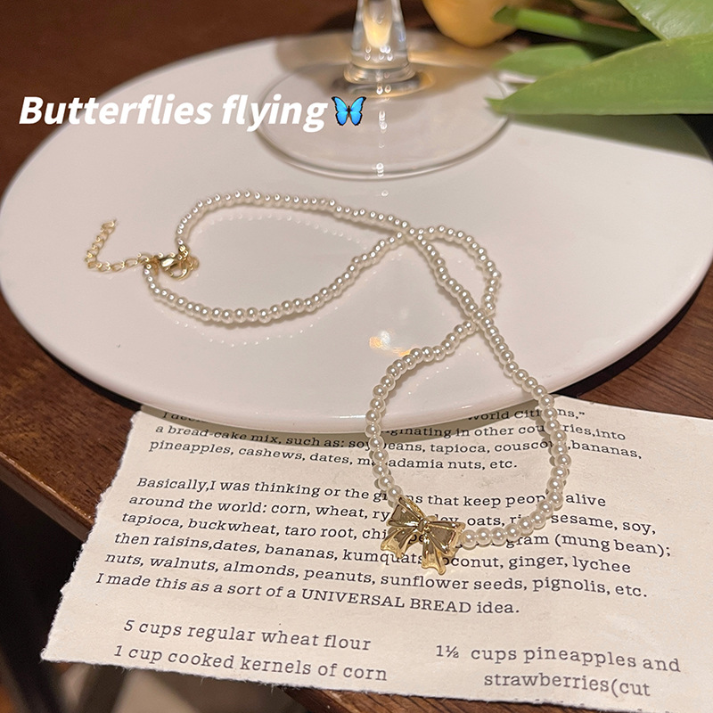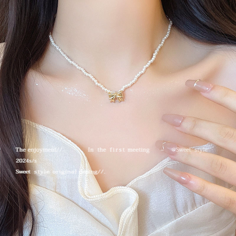 在逃公主小众高级感锁骨链饰品网红同款颈链珍珠蝴蝶结项链女批发