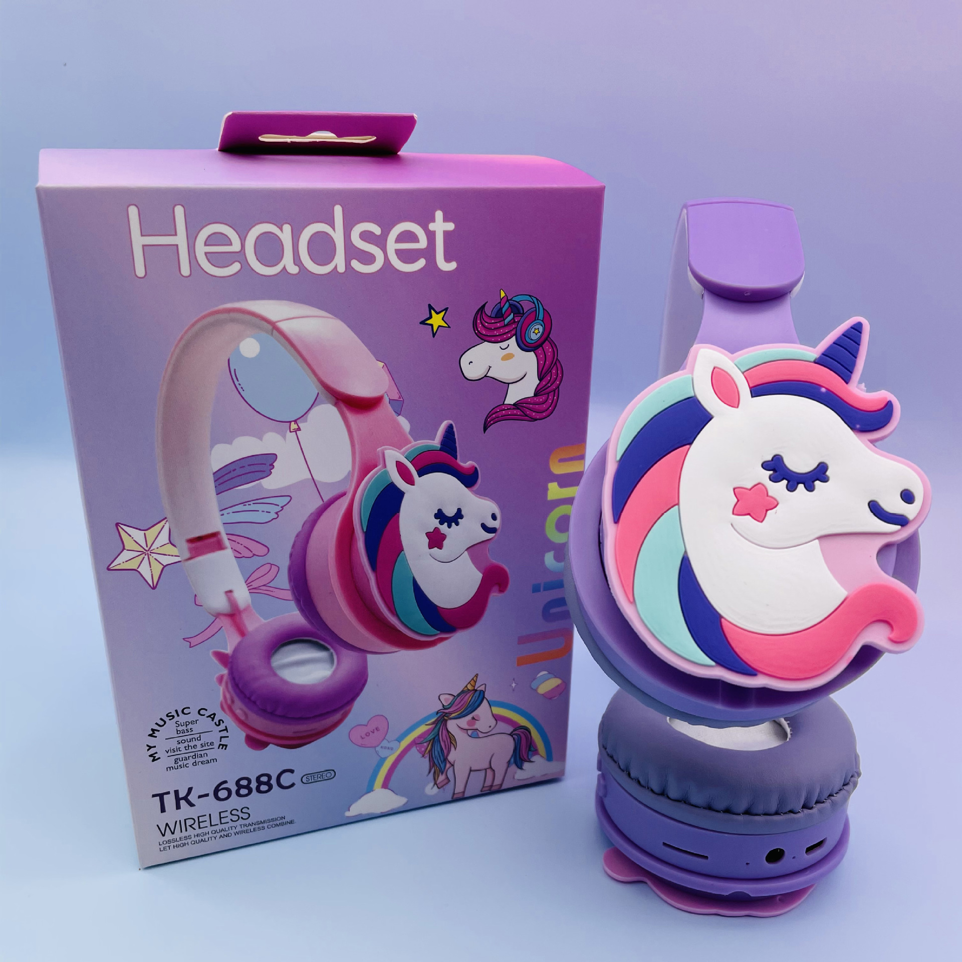 批发TK-688C独角兽卡通可爱儿童私模立体声折叠头戴式蓝牙耳机