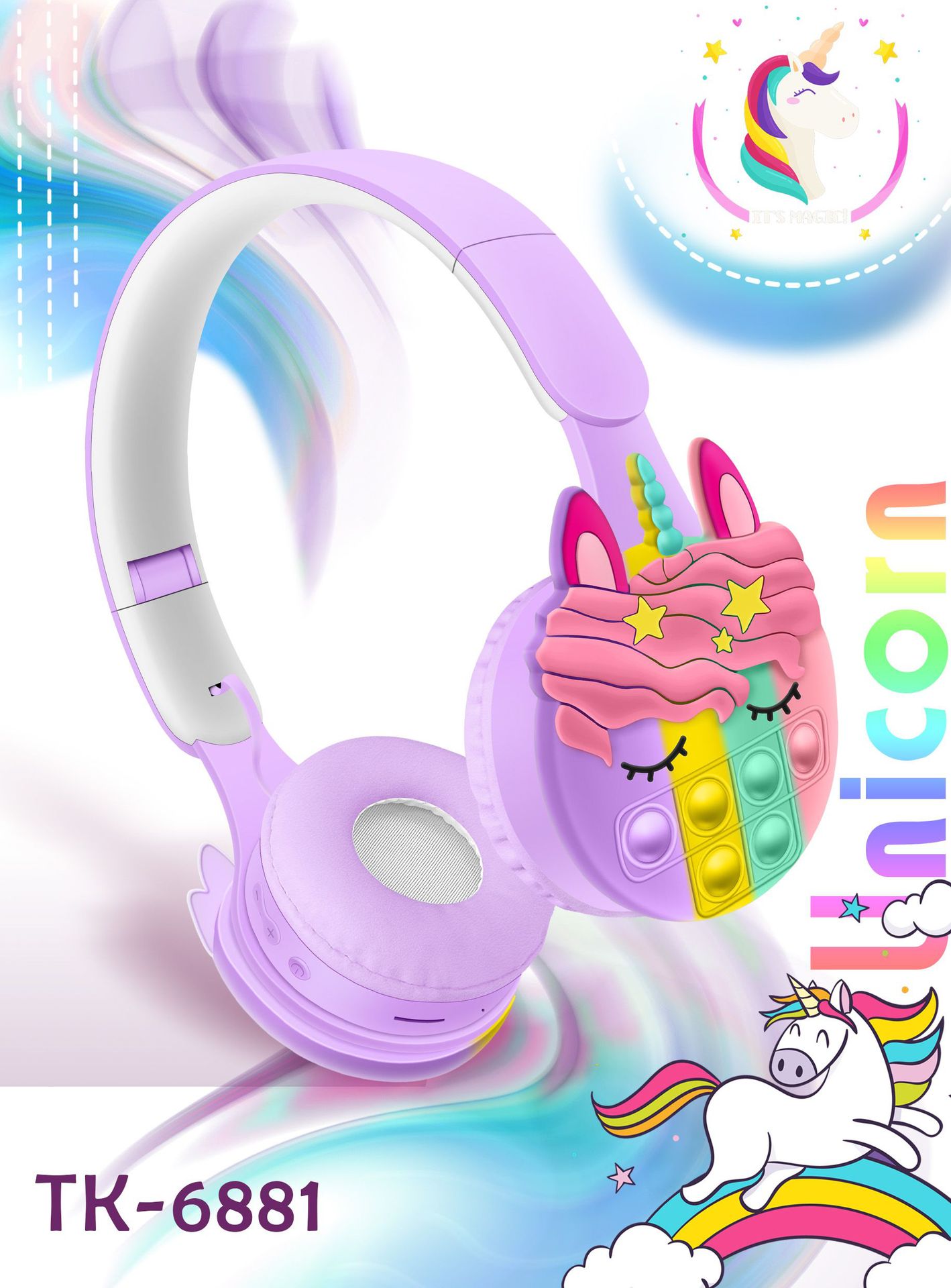 跨境TK-688A网红独角兽卡通可爱儿童立体声可折叠头戴式蓝牙耳机
