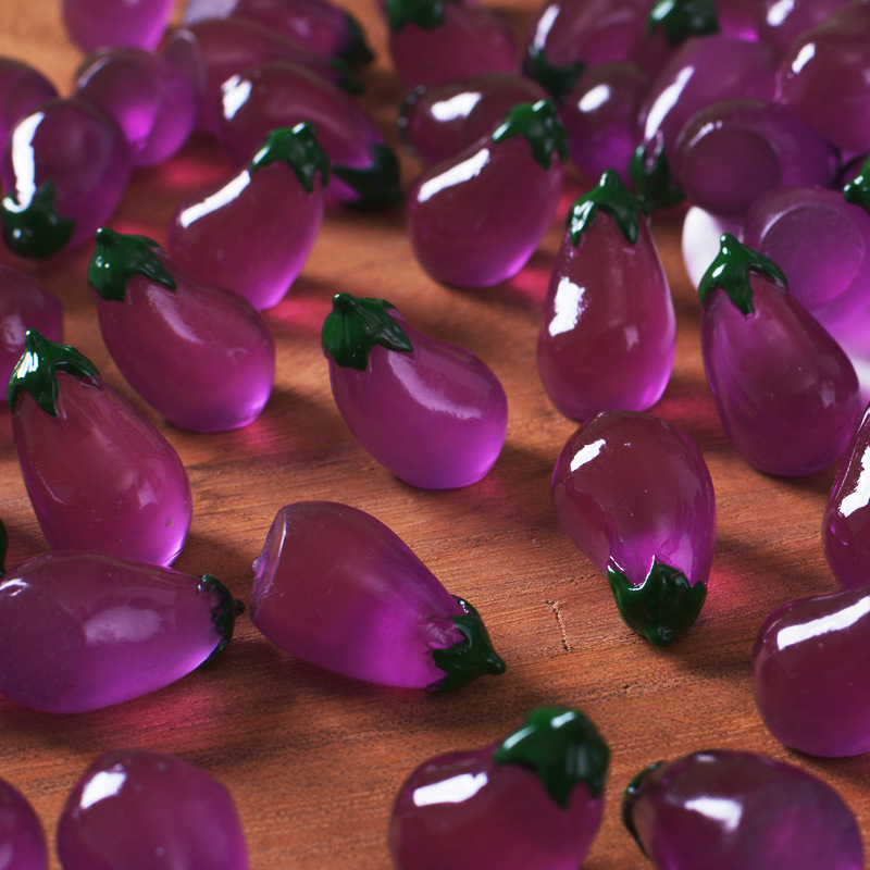 新款抖音直播仿真水果蔬菜diy饰品发饰配件茄子树脂平面夜光配件