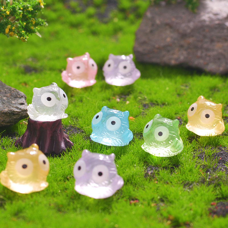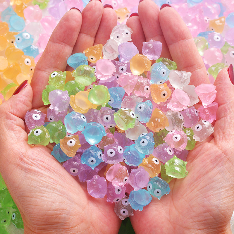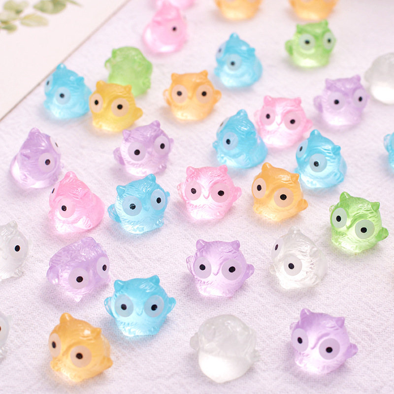 夜光配件小动物夜光猫头鹰diy饰品配件 彩色透明猫头鹰树脂小玩具
