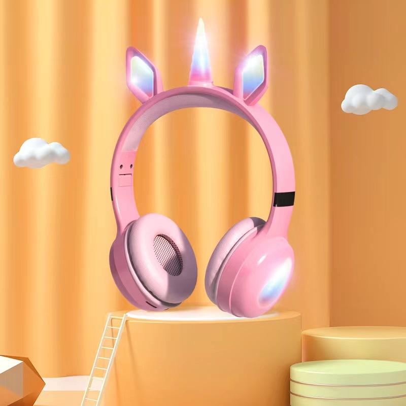 跨境新款KE-02发光独角兽立体声 折叠插卡音乐游戏耳机厂家直销