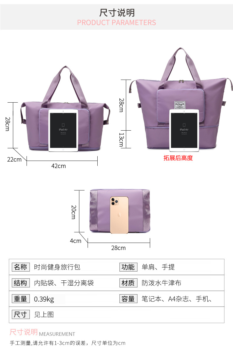 折叠旅行收纳包干湿分离瑜伽健身包手提收纳袋短途单肩斜跨行李包