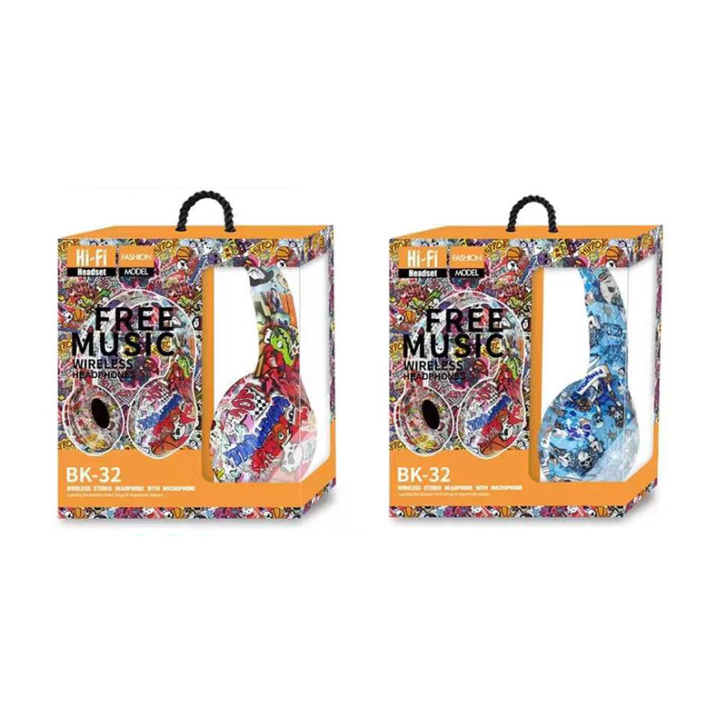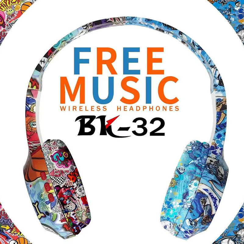 厂家批发BK-32 潮流涂鸦头戴式蓝牙耳机无线立体声蓝牙耳机