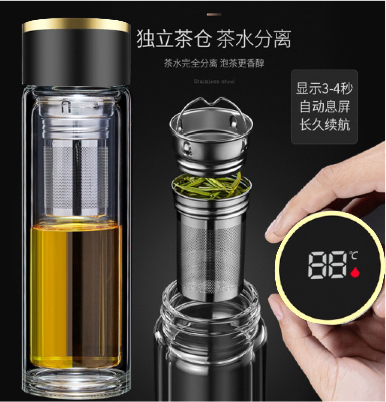 茶水分离 保温杯新款316不锈钢男士高档保冷水杯智能显温泡茶杯子