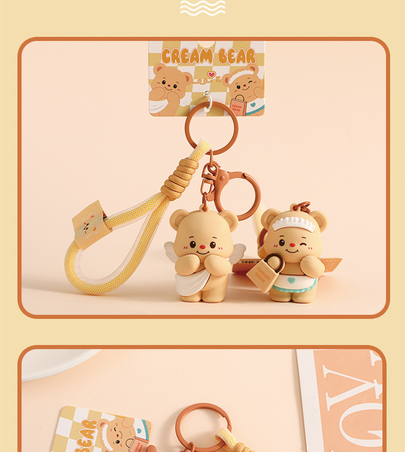 创意卡通正版奶油小熊钥匙扣公仔书包挂件挂饰情侣小礼品七夕礼物