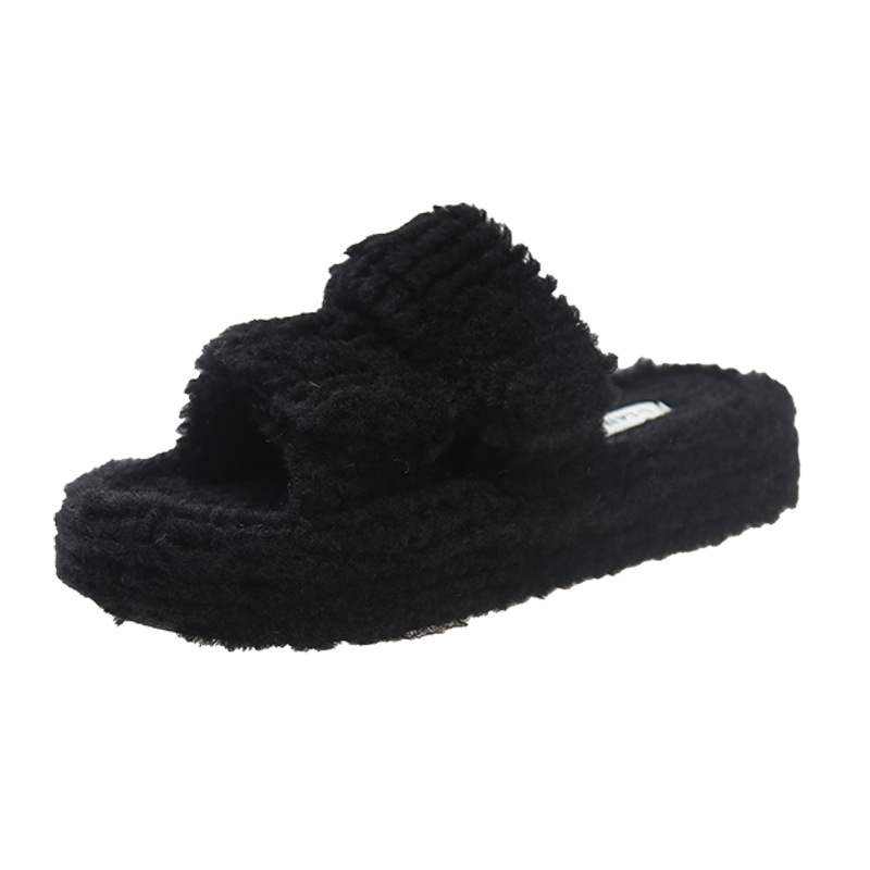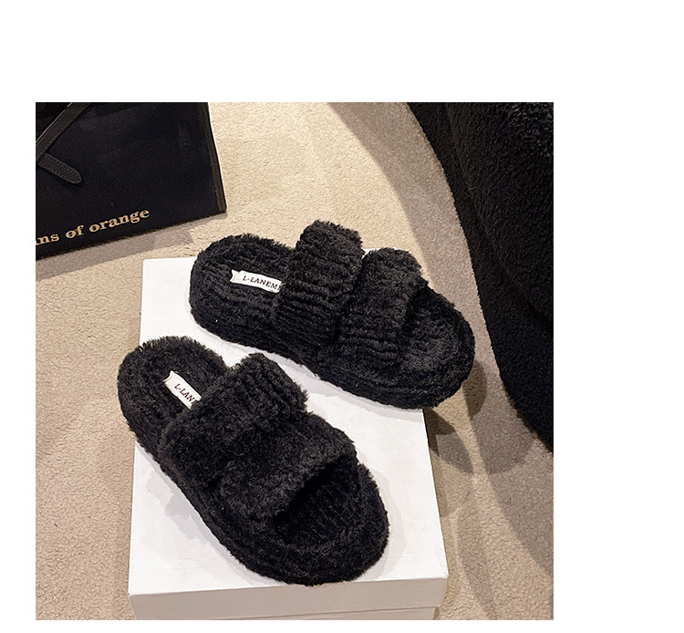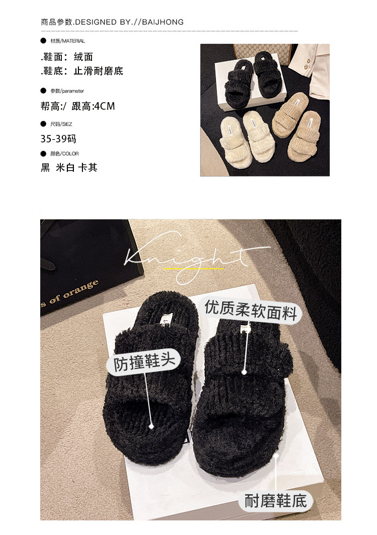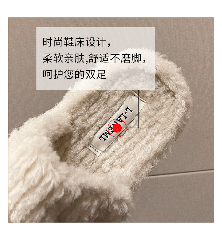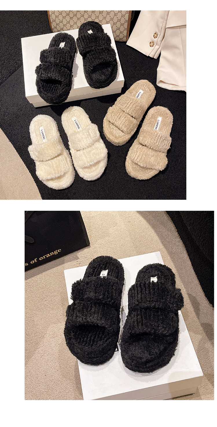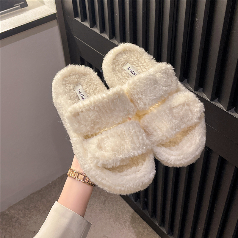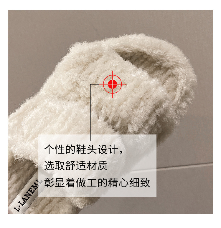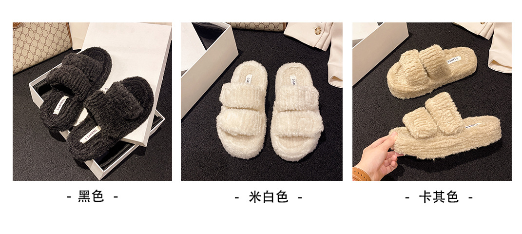 2023秋冬新款韩版魔术贴一字双带毛毛拖鞋平底外穿棉拖鞋女
